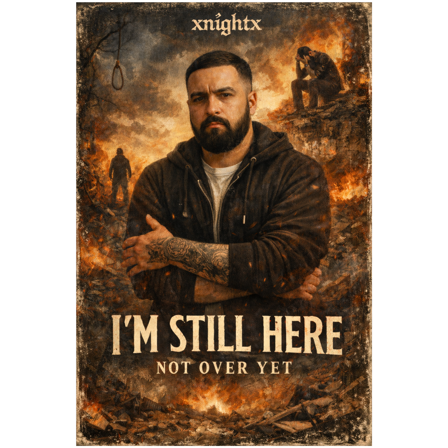 Early-2000s alternative hard rock with a strong soft–loud dynamic contrast and an emotional, restrained core, Minor-key, mid-tempo (around 90–92 BPM), Guitars are clean to lightly overdriven in the verses, using sustained chords, gentle picking, and space between notes rather than constant riffing, Drums start minimal and controlled, bass warm and supportive, creating a quiet, vulnerable atmosphere, Pre-chorus gradually adds tension without getting heavy, Chorus opens up into fuller, ringing power chords that feel uplifting and cathartic, not aggressive, Male vocalist with a low, worn, emotional clean voice, vulnerable and strained but controlled, no screaming, Bridge pulls instruments back again before the final chorus reaches the emotional peak, Production is early-2000s radio rock: warm guitars, natural drums, forward vocals, no electronics, no modern metal elements, Themes focus on regret, self-reflection, survival, and realizing it’s not over yet