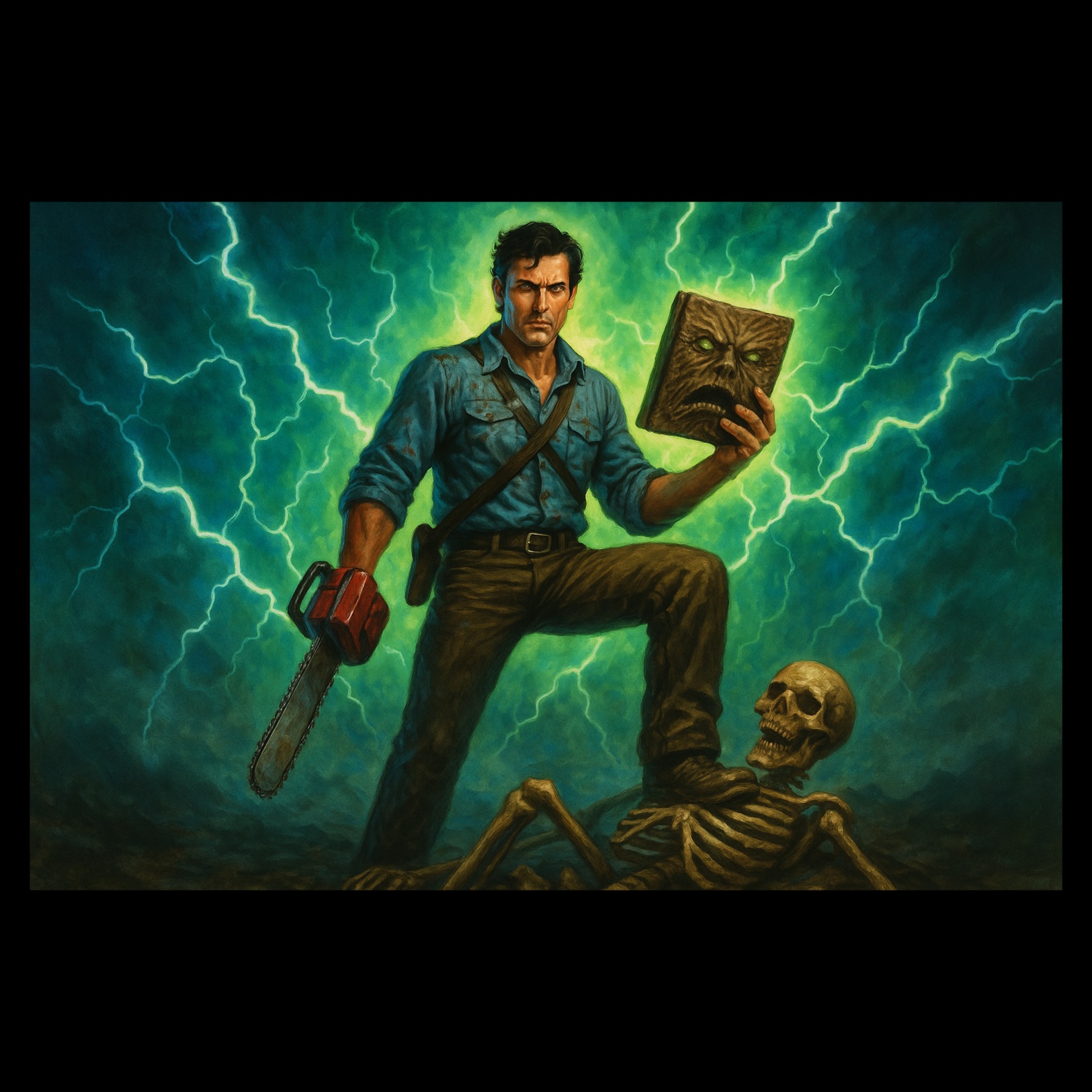 [Mood: Heroic, epic, adventurous, triumphant over dark horror, A sense of awe at Ash's improbable victories and resilience, Should sound like a minstrel truly fired up by the legend he's recounting, ]