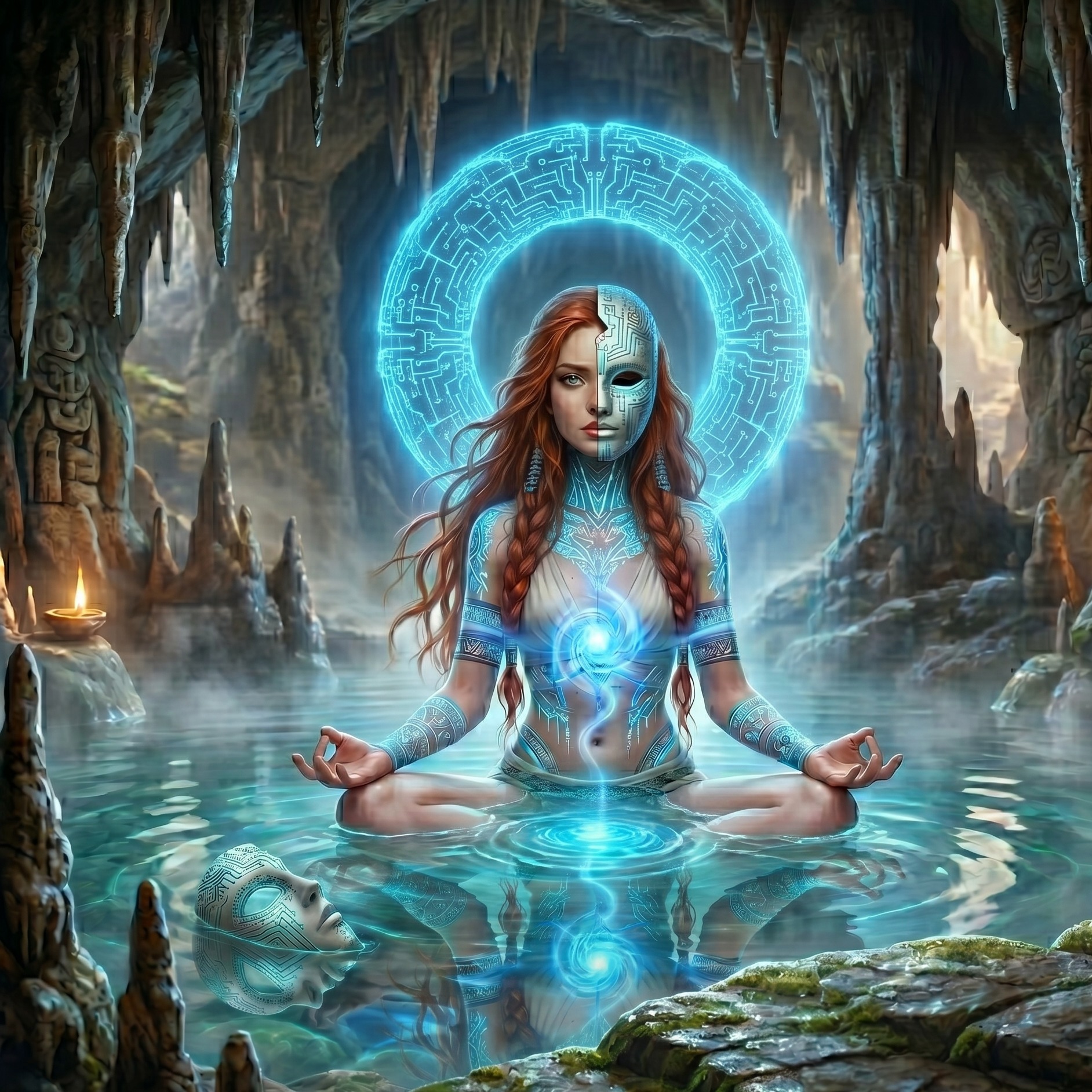 Fusion of atmospheric sludge metal and ritual tribal ambient, Features low-tuned, heavy sludge guitars integrated with a slow Nyabinghi drum ensemble and thunderous Taiko strikes, A continuous, resonant didgeridoo drone acts as a deep rhythmic pulse to represent a subterranean energy awakening, Instrumental focus with heavy double-kick metal drum rolls during massive sludge drops, Includes a weeping, psychedelic lead guitar solo over a thick, oppressive wall of sound, Vocals: Mostly instrumental; the final sequence features only a single, fragile female whisper, buried deep in the mix with heavy echo, No singing or melodic phrasing, Ritual sound design: deep resonance, bone-like textures, and primal vibrations, Tempo: 60 BPM, Key: B minor, Time signature: 6/8, Mood: Ominous, visceral, hypnotic, subterranean, oppressive, primal trance, spiritual awakening, dark ritual, heavy pulsing