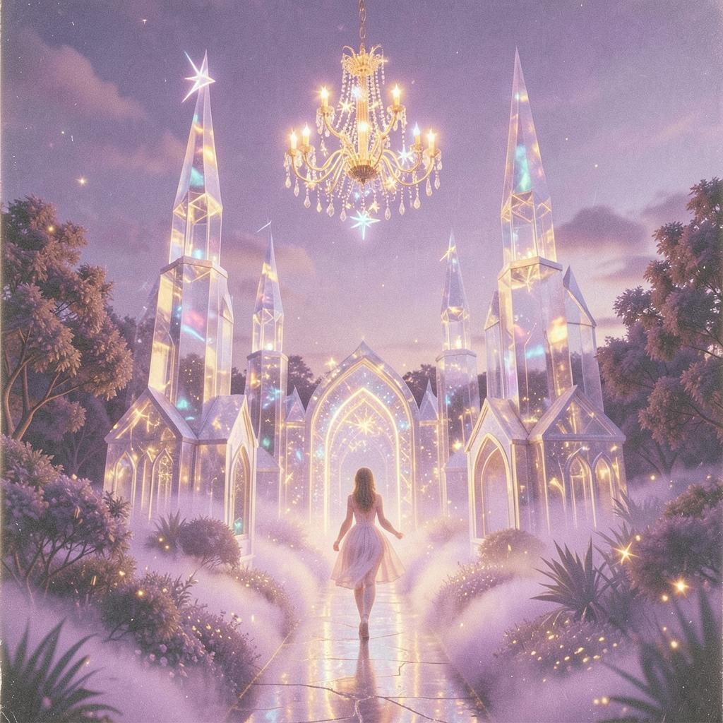 [Prompt: 1950s Disney film score, technicolor orchestral arrangement, lush sweeping violins, prominent harp glissandos, bird-whistle flute trills, soprano vocals with light vibrato, crystalline and innocent, ]