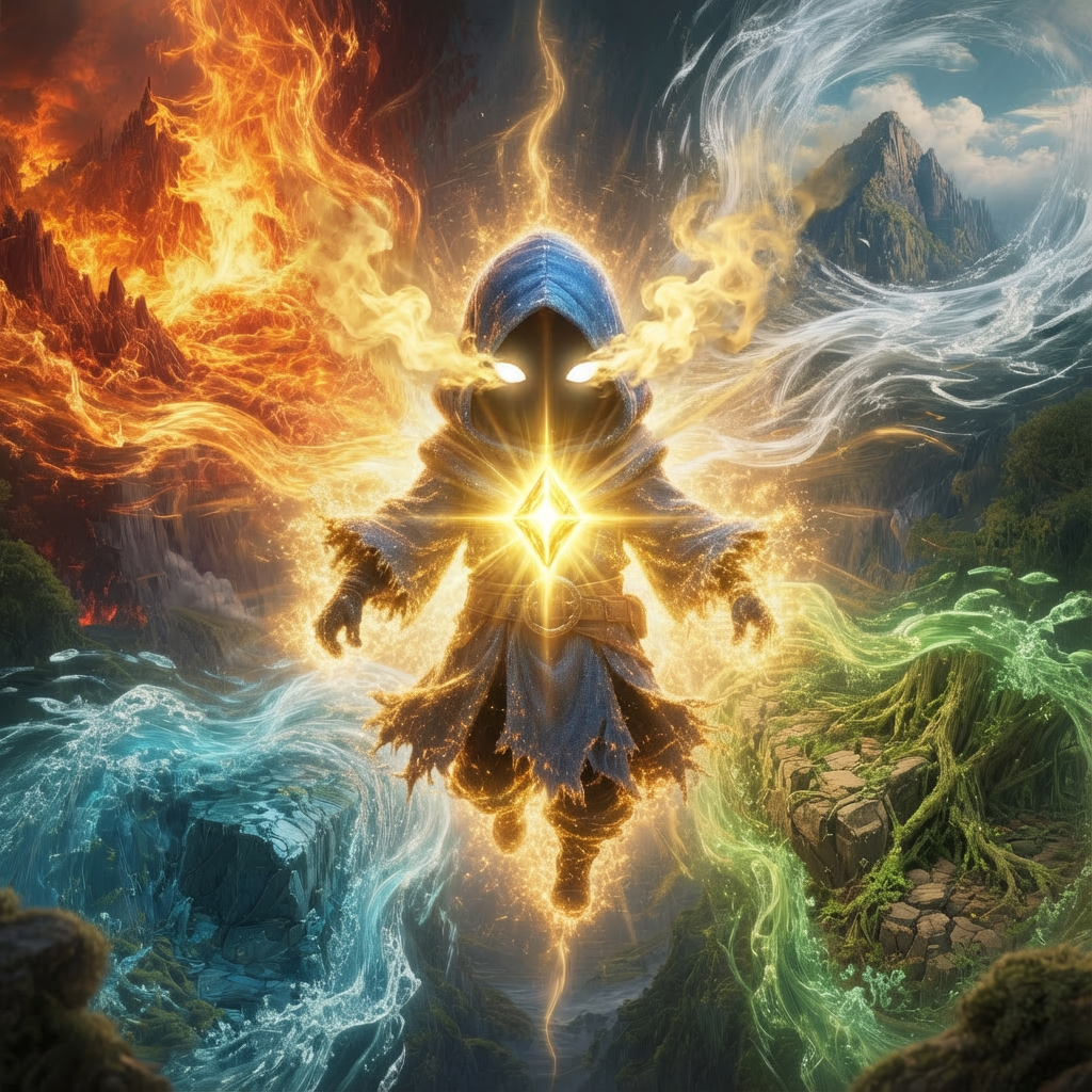 Male vocals, Female vocals, Viking Chant Choral, orchestral cinematic ambient, four elements converging, enchanted forest textures, bioluminescent shimmer, liquid flowing arpeggios, crystalline water drops, crackling fire rhythms, molten brass swells, tribal wind percussion, soaring aerial sweeps, shamanic drums, didgeridoo, bagpipes, soft piano runs, delicate harp glissandos, tremolo strings, gentle marimba, chimes, luminous pads, watery reverb, flame-like ascending arpeggios, breathlike wind textures, dreamlike orchestration, grimdark choir, celestial percussion, immersive soundscape, magical harmonic progression, dynamic crescendos, emotional journey, wonder and discovery, meditative yet majestic, layered elemental textures, ancient spirit guardians, transcendental atmosphere, 432 hz, spiritual awakening, primal energy meeting ethereal calm, nature's four forces unified, cinematic depth, slow evolving harmonies, infinite spaciousness, serene yet powerful, ambient meditation, world music fusion, sacred convergence, melodic arcs