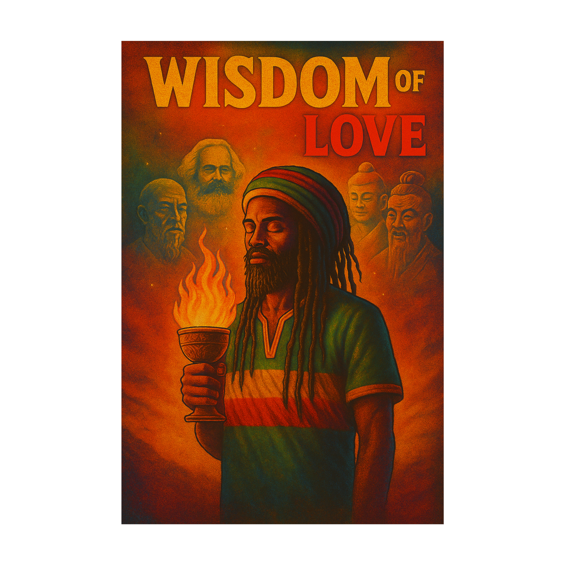 Create a spiritually driven fusion of roots reggae and dubstep with philosophical themes, Tempo: 75–80 BPM (halftime feel), Base the riddim on classic dub-reggae grooves with deep offbeat reggae-style guitar chops, sub-heavy bass, and echo-heavy percussion, Add modern dubstep drops between verses: distorted wobble bass, glitchy synth stabs, turntable scratches, and metallic FX, Verses should be performed in Jamaican Patwa (Creole), delivered in a storytelling style with relaxed but rhythmic flow, Structure: Intro → Verse 1 → Verse 2 (Socrates) → Interlude (Dubstep/Scratch) → Verse 3 (Marx) → Verse 4 (Buddha) → Verse 5 (Confucius) → Interlude (Dubstep/Scratch) → Verse 6 (Rasta conclusion) → Outro, Production FX: Tape delay, spring reverb, vinyl hiss, reversed FX, Keep bass deep and wide, No chorus; linear progression like a spoken dub tale, Atmosphere should feel ancient yet futuristic — roots mysticism meets digital riddim