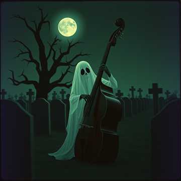 Create an energetic psychobilly instrumental track featuring slap upright bass as the main instrument, Use a fast-paced shuffle rhythm (around 180 BPM), rockabilly-style Gretsch guitar with slight distortion, snare-heavy drums, and occasional vintage organ stabs for retro flavor, The bass should dominate the groove with aggressive slap techniques and walking basslines, The mood is wild and raw but with a nostalgic 1950s-60s horror-b-movie vibe, Think of a mix between rockabilly, punk energy, and spooky surf rock influences, No vocals, only instrumental, Use reverb-heavy guitar licks, slapback echoes, and lo-fi textures