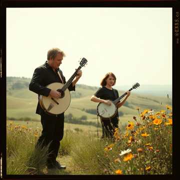 Energetic, acoustic instrumental track featuring tight rhythmic dialogue between cajón and banjo, Cajón provides crisp, punchy percussion — rich with hand-slaps, ghost notes, and syncopated rhythms played with fingers and palms, Banjo leads with bright, percussive fingerpicking in rolling 5-string style, full of hammer-ons, pull-offs, and quick arpeggios, Track has natural, raw live-session feel, captured in warm, slightly roomy acoustic environment, No click-track feel — rhythms breathe and sway slightly, Groove alternates between upbeat folk-inspired passages and more minimal, groove-driven breaks where cajón takes over with dynamic fills and rim hits, Tempo is moderate and driving (~100–115 BPM), Occasional call-and-response moments between banjo licks and cajón fills create conversational, improvised energy, Light background textures like room reverb, mic rustle, or subtle foot tapping are welcome to preserve a human touch, No digital drums or synths, country music, Instrumental, ‑female voice
