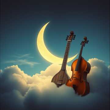 A cinematic classical instrumental duet featuring sitar and cello, The sitar performs intricate modal improvisations using Arabic maqam scales (e, g, Hijaz, Nahawand), with expressive bends and ornamentation, blending Middle Eastern tonalities into its phrasing, The cello contrasts this by providing deep, resonant melodic lines grounded in Western classical articulation, The music blends Arabic-inspired sitar melodies with Western romantic and baroque cello motifs, creating a meditative yet dramatic atmosphere, The arrangement includes subtle ambient textures, soft string pads, and spacious reverb to evoke a sense of grandeur and introspection, Tempo is slow to moderate (60–75 BPM), focusing on emotional resonance over rhythmic drive, Imagine a peaceful but expressive dialogue between East and West, where the sitar introduces rich Middle Eastern color within a cinematic setting, No percussion—purely melodic and harmonic interplay