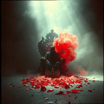 Dark, cinematic trap with ritual drums and low brass swells, Male vocals, half-chanted, half-rapped, Hook explodes with choral stacks and distorted sub-bass, verses stay sparse with pulsing risers and eerie vocal chops, Big tom fills and reverse hits lead into each chorus; last hook adds octave-doubled lead and widening reverb tail