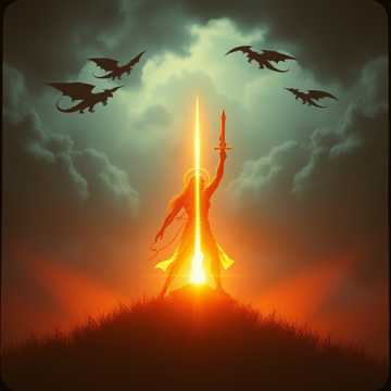 Thunderous battle hymn with choirs over heavy cinematic drums, Low brass and taiko patterns stomp forward; snare accents feel like marching feet, Verses stay tight and chant-like, chorus explodes with layered angelic harmonies and metallic hits, then a soaring bridge with rising strings and distant horns, Big, reverent, and warlike, soundtrack