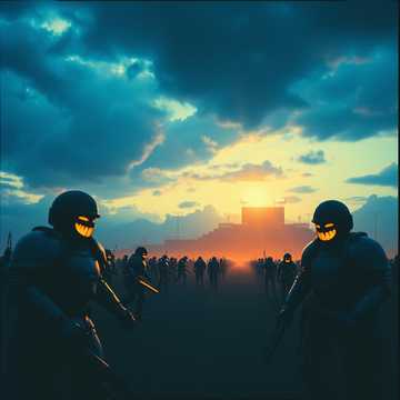 Epic choral drama with male vocals leading verses and massive mixed-choir hook; airy pads and low drones under the report-like storytelling, then soaring strings and taiko-style percussion for the chorus, Verses feel like a calm, strategic briefing; chorus explodes into battlefield-scale harmonies and echoing calls-and-responses
