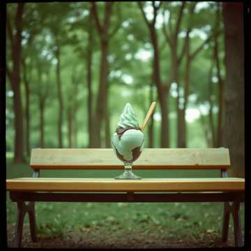 On a summer evening, sitting on a bench in the shade of the trees at the park, Autumn is already just around the corner, The passing breeze gently cools my sweat-dampened body, The refreshing taste of chocolate mint ice cream spreads through my mouth, I feel a new strength, the kind that makes me believe I can work hard again tomorrow, A relaxed rhythm with a cool, crisp tone, Metallic percussion, The sound of bells, A glassy piano, Strings flowing like the wind, A snare played with brushes, At its core, a jazz-flavored bossa nova, A guitar singing like the chirping of little birds