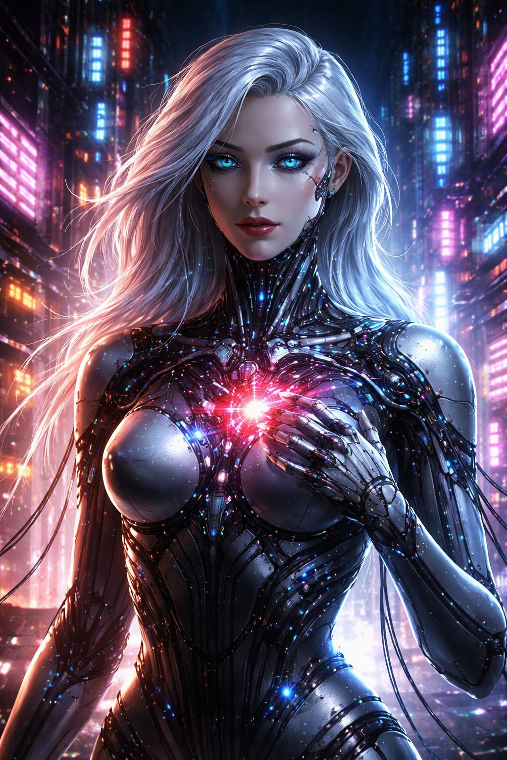 "Create an electronic track with a serene, deeply ethereal intro featuring delicate shimmering synth pads, gentle arpeggios, and soft ambient textures like distant chimes or celestial drones, evoking a tranquil cosmic void for 30 seconds, Shift to a build-up with heavy reverb synth leads, pulsating bass, and subtle distorted noise layers, At 1 minute, unleash intense digital glitch effects with chopped vocals, distorted hi-hats, and gritty noise bursts for a chaotic, futuristic climax, At 1:30, insert a 3-5 second blackout with faint static crackles, then explode back with amplified glitch and noise, Keep 120-130 BPM, blending ambient, cyberpunk, and glitch-hop, Make it otherworldly and emotional, Include vocals with these lyrics: