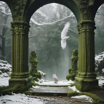 Orchestral folk techno, Ancient stone SFX intro, tribal frame drum beat, Male choir (Old Church Slavonic), runic flute, sad violin, Jew's harp, granite resonance, didgeridoo, laser harp, shower, moss growth synths, Hans Zimmer, bpm 140, studio quality, The sound of the wind at the end of the song
