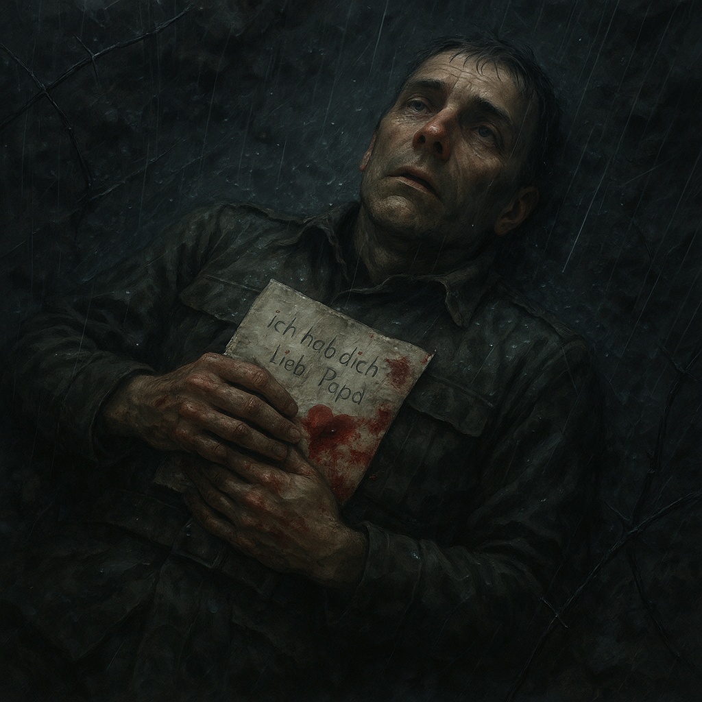 The song pulses with a raw, layered sound, blending New Wave’s shimmering synths, Traditional Heavy Metal’s gritty guitars, Industrial’s mechanical edge, and Americana’s earthy warmth, Driving, distorted guitar riffs, thick with mid-range crunch, lock into a steady, galloping rhythm, grounding the track with metallic heft, Synths weave eerie, pulsating arpeggios, their bright, glassy tones cutting through like distant stars, adding a futuristic sheen, The bass rumbles low, industrial-edged with a gritty, overdriven pulse, anchoring the rhythm section alongside pounding, reverb-heavy drums that echo like factory hammers, A lone baritone guitar occasionally surfaces, its twangy, mournful notes evoking wide-open plains, lending soulful contrast, The arrangement builds dynamically, each instrument carving space, supporting a narrative arc that feels both epic and introspective, balancing raw power with haunting melody