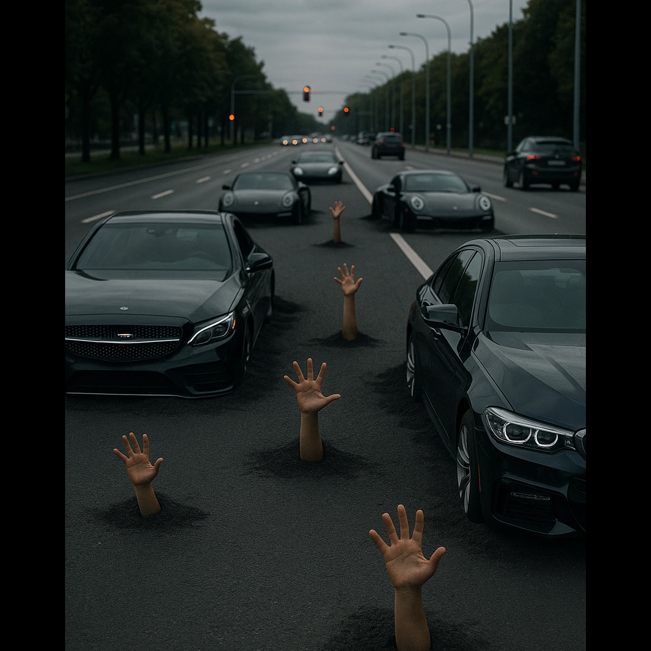 Set in a minor key, this fast paced song Opens with a sinister guitar riff and a funky twisting bass line in the Hijaz Kar scale, then tribal drums enter, Between verses erupt with nasty avant-garde thrash riffs, Verses merge haunting powerful clean male vocals with Arabicvocalflourishes, evolving to epic, gritty deep vocals, Funky bass lines weave under Arabic-influenced melodies, Arrangements alternate between frantic thrash and expansive avant-garde sections, layered with shifting textures and polyrhythms for a studio-polished, experimental metal sound, filled with horror-soaked atmosphere