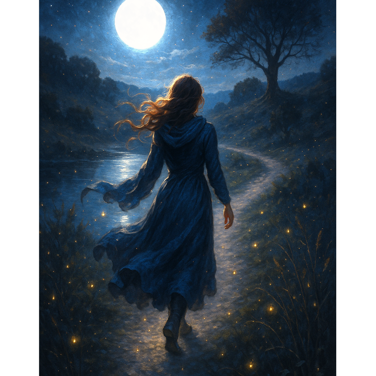 > Epic blues‑rock ballad, folk and acoustic elements with mysterious, mystical mood, Gentle fingerpicked acoustic guitar intro in a minor key, slow tempo, ambient flute or Mellotron accents, spacious reverb, Gradually builds with layered acoustic textures, warm bass, subtle percussion, leading to a powerful electric guitar solo and full drum crescendo, Male vocal, poetic and introspective tone, evocative narrative storytelling, Cinematic dynamics, evolving from soft intimacy to grand emotional peak, ]