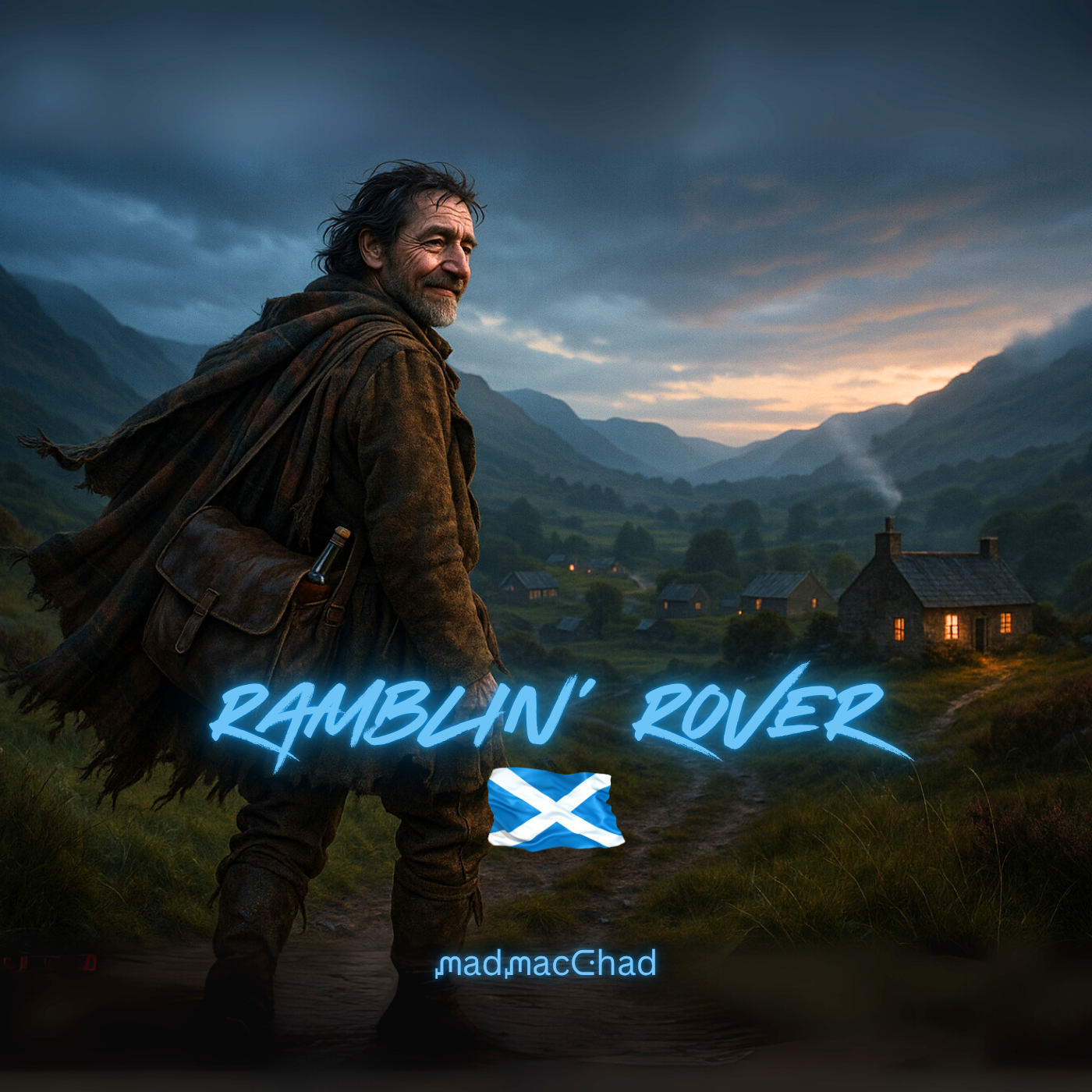 🗣️ Male vocals in rich Scottish brogue with storytelling tone, light grit