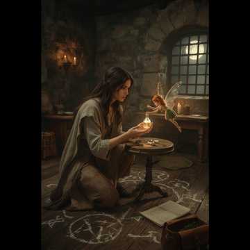 Epic Symphonic Power Metal fused with medieval acoustic and fairytale folk, Starts with bouzouki, nyckelharpa, Celtic flutes, and soft medieval harp over whispered Gregorian chants, evoking magic awakening, Builds into full symphonic metal with soaring strings, epic horns, thunderous timpani, and complex syncopated drums, Vocals lead with a powerful yet crystal-clear female voice, shifting between operatic highs and raw rock emotion, Backed by massive choirs—Gregorian, Celtic, and magical duets, Acoustic interludes with baroque violin, classical guitar, tambourine highlight emotional intimacy between Carry and Noctelya, Final climax blends celestial choir, elven flutes, tribal percussion, and virtuosic electric guitar solos, A mystical metal ritual, a journey through heart, fire, and fate