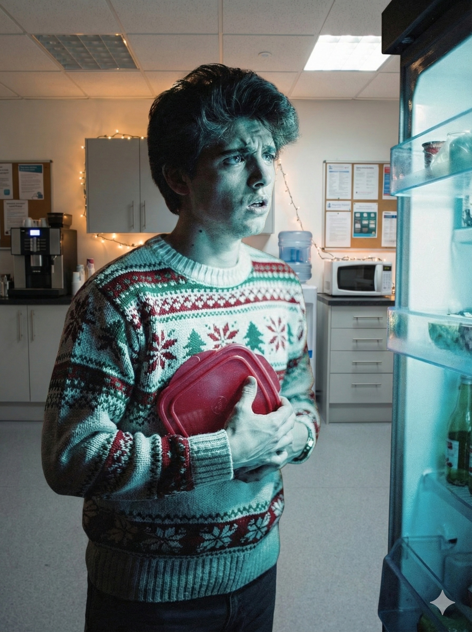 A whirlwind in 3/4 time, starting with grand cinematic orchestral strings and brass racing under a bright, jubilant Christmas choir, Sudden Broadway flair erupts—jazzy woodwinds, tap-dance rhythms, and lush harmonies—before fast, glitchy electronics and chaotic bursts distort the texture, Abruptly, the genre pivots to an intensely satirical Broadway finish, complete with energetic, comedic ensemble and brash brass hits