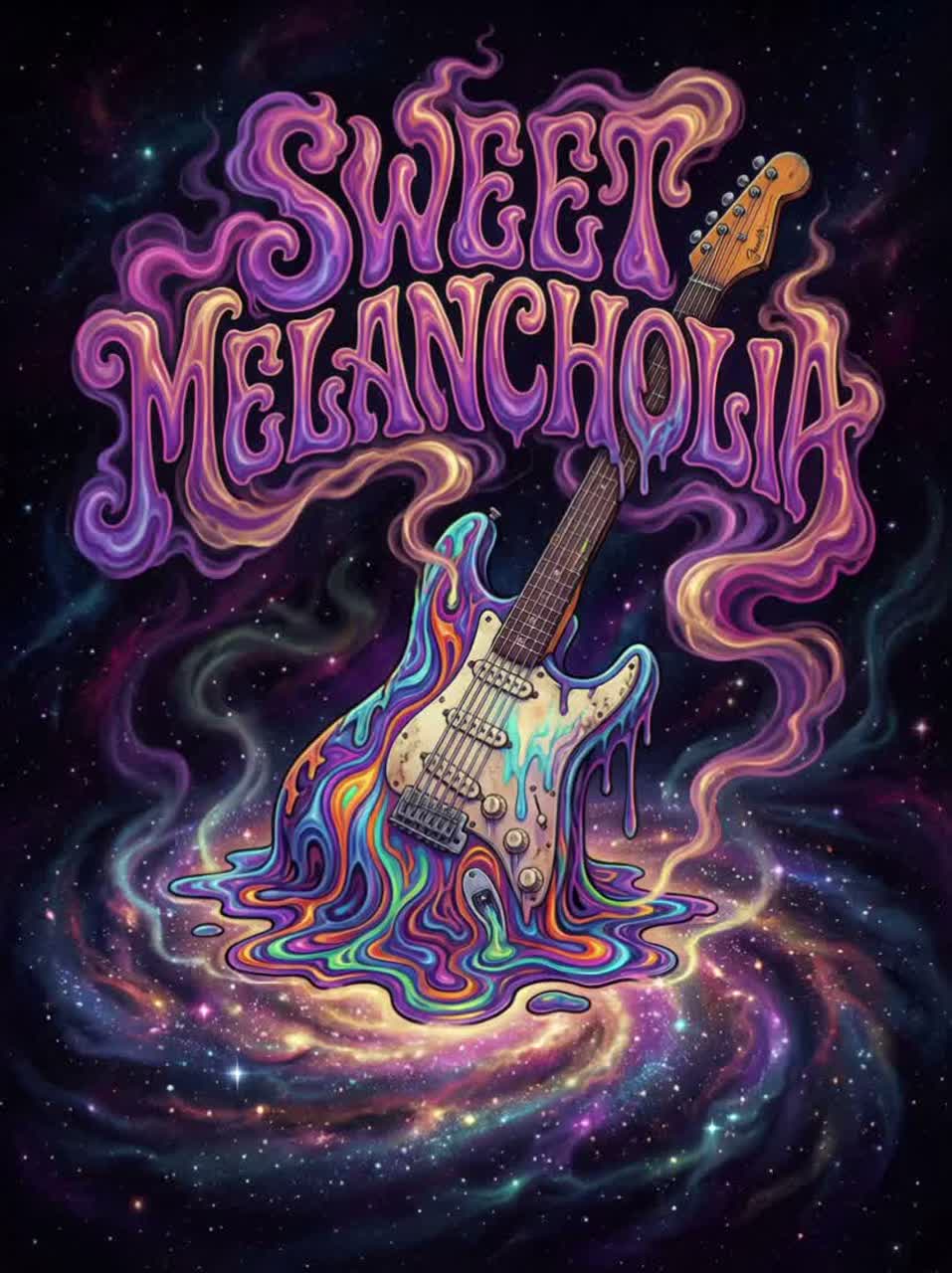 Bittersweet Psychedelic Pop track with Art Rock influences, I want a warm acoustic guitar strumming, supported by gentle hand drums and a deep floor tom, creating a tribal yet soft pulse at a relaxed mid-tempo, Subtle Fender Rhodes and Hammond organ pads should provide a lush, dreamlike background, The male tenor vocals should be intimate, conversational, almost whispering, with a clear, reedy timbre and stacked falsetto harmonies for a rich, ethereal choral effect, For the solo, use a lo-fi distorted guitar with a "fizzing" and disintegrating tone, The overall mood should be wistful and nostalgic