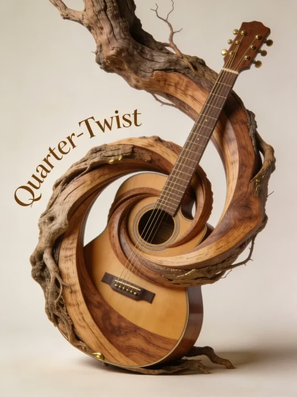 A folk-rock ballad in 6/8 at 82 BPM, D minor Aeolian, opens with intimate fingerpicked acoustic, soft reverb, and low tape noise, Verses feature brushed drums on dotted-quarter pulses, upright or electric bass with melodic counterlines; harmony avoids dominants, moving i–iv(sus2)–♭VIIadd4–♭VImaj7, plus quartal and maj7 color, Layers of acoustic guitars, gentle clean electric, mandolin, and fiddle textures fill the refrain, delivering a singable melody emphasizing the ♭3–2–1–6 motif, The word “Turn” is whispered above a droning i/iv pedal with bowed guitar, The middle-eight sections plane ♭VImaj7 to ♭IIImaj7 to i(add9) as toms swell, The coda slows in tempo, closing softly with hushed multi-part harmonies and sustain