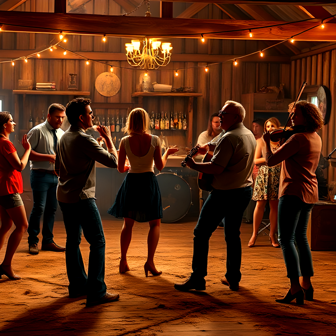 jazz, 90’s radio-ready country swing kissed by big-band jazz brass and filthy hybrid drops; sweet female lead trading lines with a deep male vocal, brushed kit and hand percussion in the verses, slap-back guitars and upright bass walking the groove, whistle hook over the choruses, then surprise filthstep wubs and chopped vocal loops punching through the bridge before snapping back to a boot-stompin’ finale, filthstep, deep, country, rhythmic, swing, female vocals