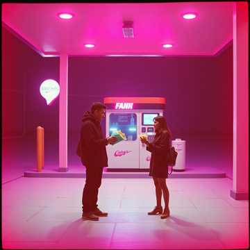 rap, Hyperbright electro-pop with rap breaks and pop-country guitar twang; double vocal (male rap, female pop) over punchy sidechained drums and crisp synth riff, Verses stay tight and rhythmic with vocoder layers and subby bass; chorus explodes into stacked digital harmonies and gang vocals, Bridge drops to filtered chat SFX and glitchy pads, then slams into a distorted punk-hardcore chant outro with crunchy power chords and claps, punk, hardcore, pop, electronic, country, female vocals