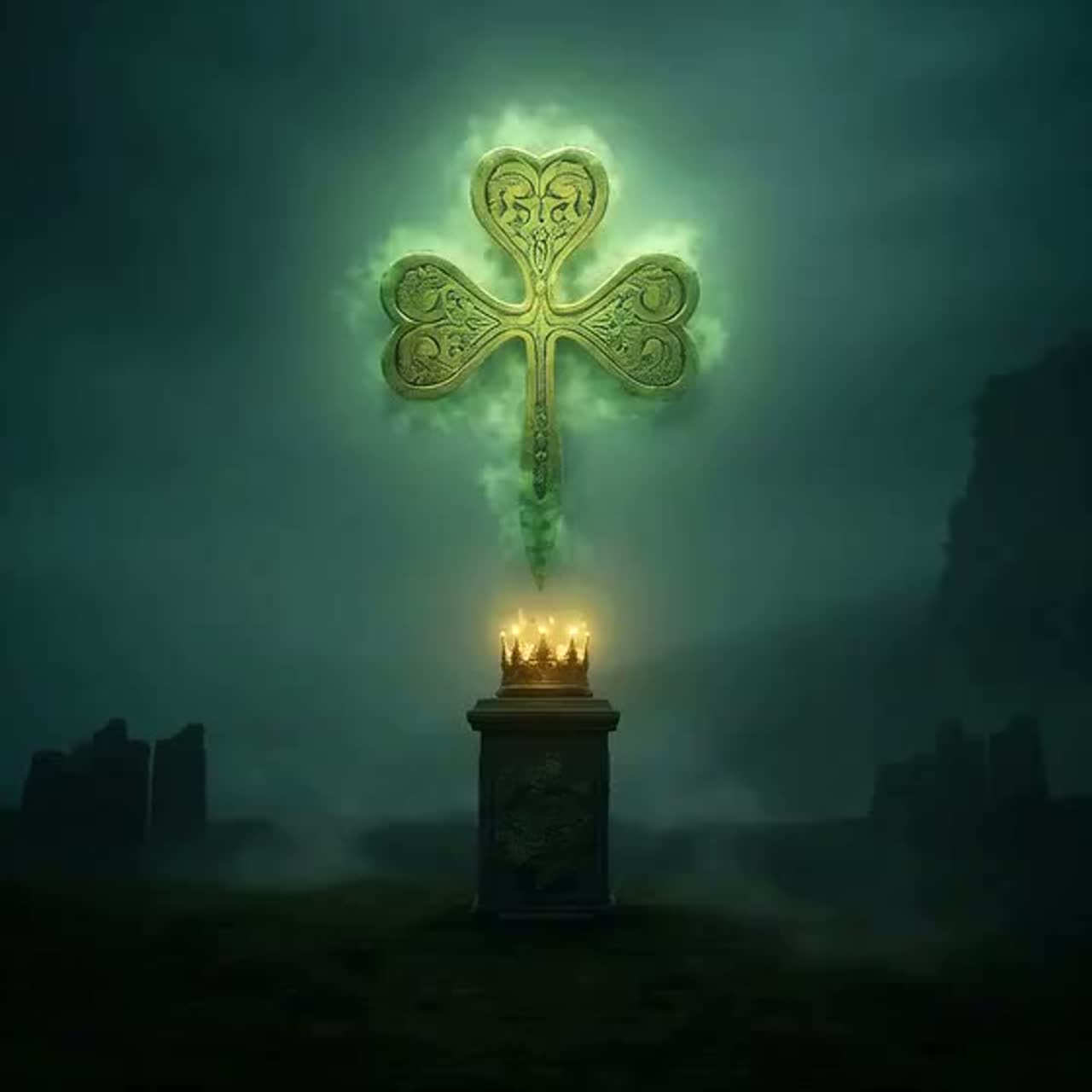 Epic Irish Folk Trap / Celtic Rap duet with deep storytelling tone, Male and female rap vocals in dialogue, blending traditional Irish instruments (fiddle, bodhrΓ‘n, whistle) with cinematic trap drums and 808 bass, Reflective but powerful, celebrating generations of Leprechaun legacy β proud, emotional, slightly mystical, Tavern ambience, thunder rumbles, and choir harmonies for grandeur, Tempo around 88 BPM