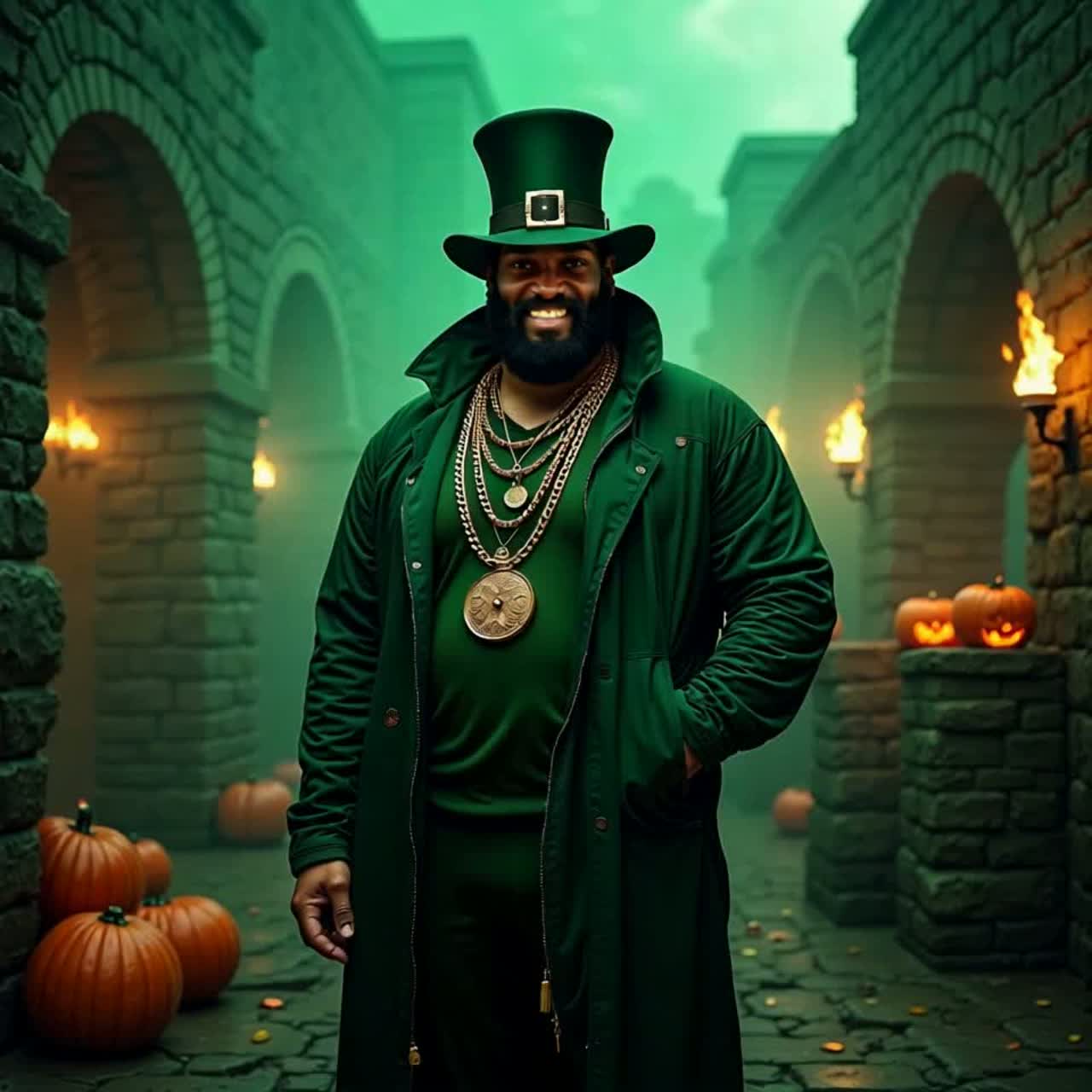 Irish Folk Trap / Celtic Rap with dark Halloween energy, Deep male rap with Irish accent, eerie fiddle and whistle melodies, stomping bodhrΓ‘n drums, haunting choirs and 808 bass, Cinematic pub ambience mixed with spooky night wind, laughter and ghostly whispers, Tone: mischievous, proud, storytelling β like an ancient Irish trickster proving that Halloween was born in Ireland, Tempo ~90 BPM, key D minor, vibe: ancient meets modern, spooky but groovy, Spooky Vibes, Typical Halloween parts