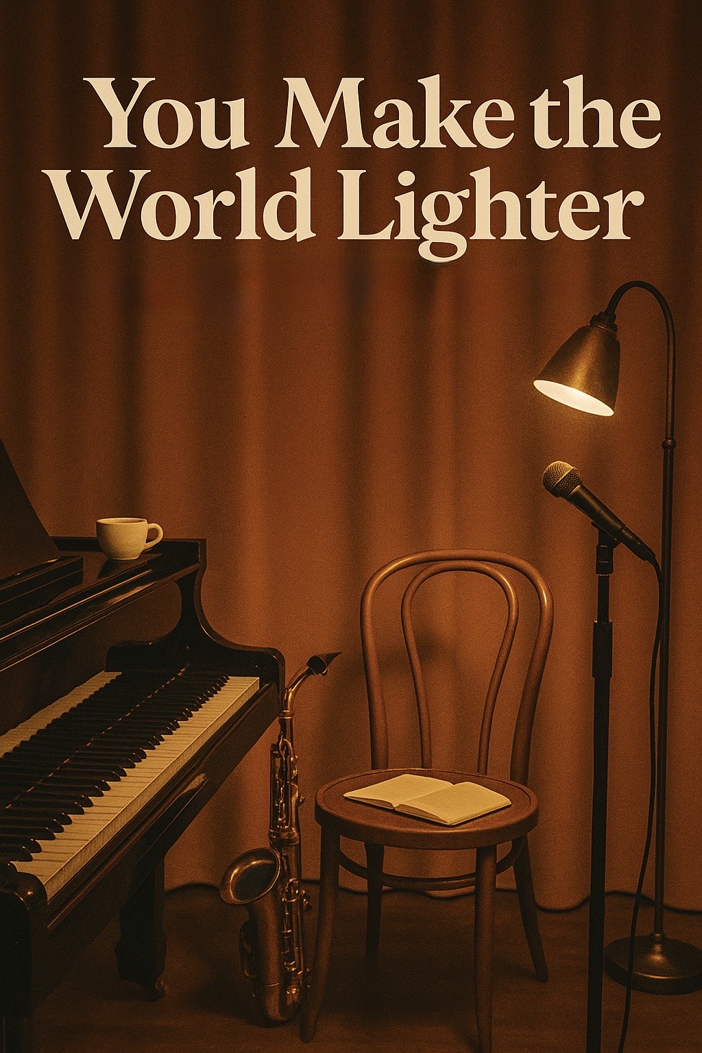 Upbeat jazz-pop song with swing feel, bright piano chords, upright bass walking line, light brush drums, and playful saxophone, Male vocal with warm, romantic, and slightly cheeky tone, like MichaelBublé in a love song, Mood: charming, loving, and uplifting, with a hint of humor and sophistication, Tempo: mid-tempo swing (90–100 BPM), Include short instrumental breaks with saxophone fills, Overall length: 3, 5–4 minutes