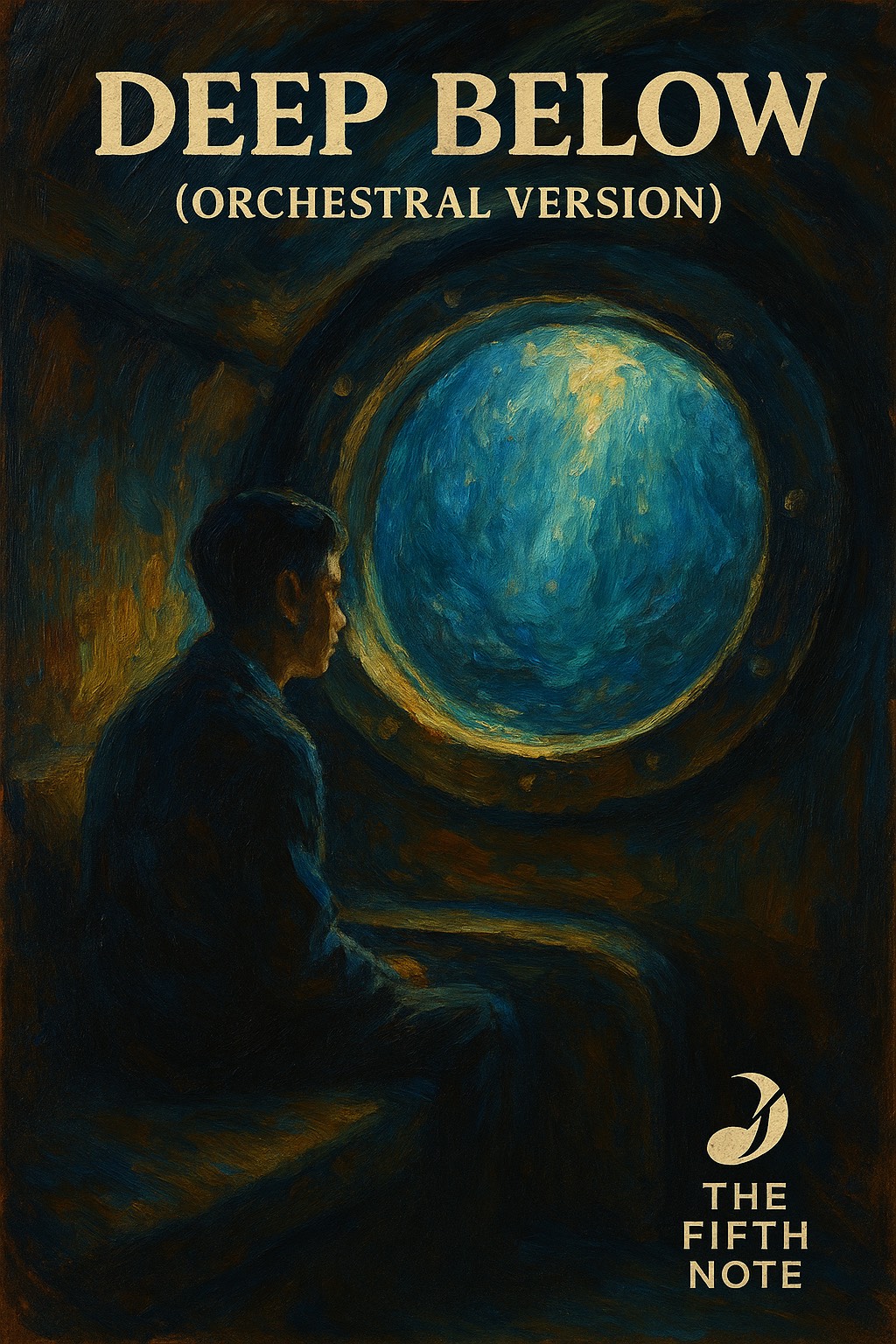 A full-length Korean R&B song in the style of Crush with a full orchestral arrangement, titled "Deep Below", Soulful male vocals with expressive phrasing and modern R&B rhythm, but no drums — the groove is carried by pizzicato strings, brass swells, timpani rolls, and harp arpeggios, Theme: a submarine journey symbolizing diving into one’s emotions and memories, finding calm in the deep, Tempo 80 bpm, Warm cinematic reverb, Emotional, grand, and poetic, Language: Korean with short English hook “deep below”