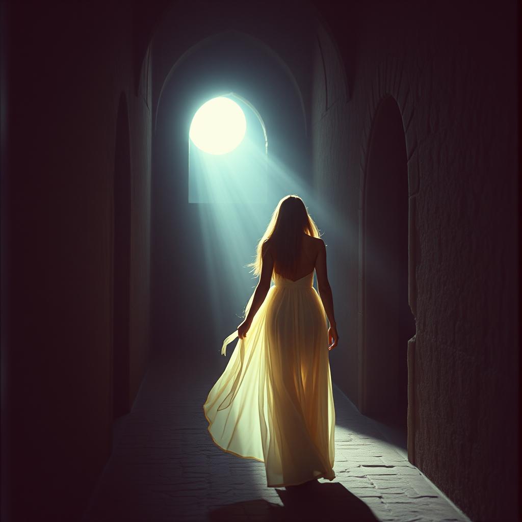 A Darkwave/gothic metal piece with Deep gothic medieval sounding soaring Female Vocals, Gothic vibes, Orchestral Metal, Dark Ballad, Emotional intensity, side-chained pads, echoing reverb, deep piano, energetic drums, cello, flute, mediavel folk vibes and instruments, death metal guitar riffs, atmospheric, ethereal deep female choir at the background