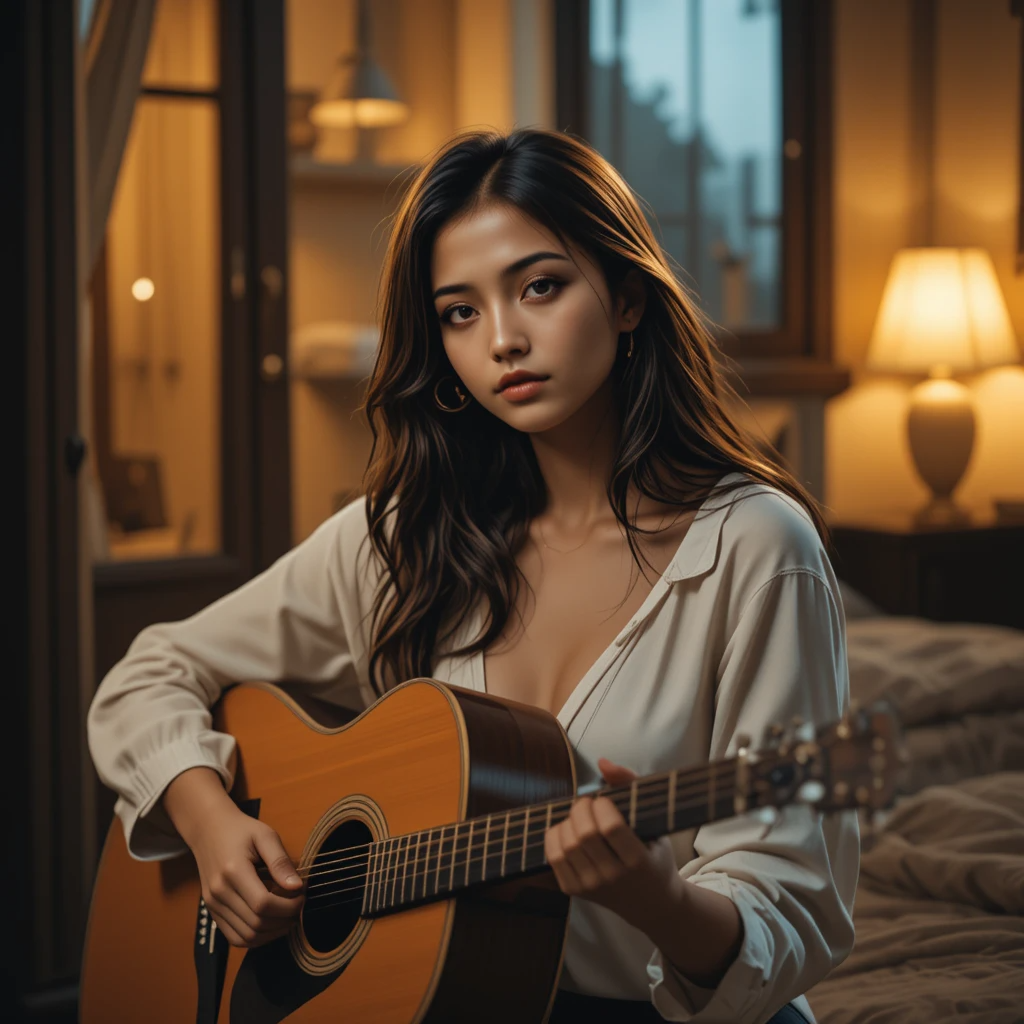 Influenced by mid 80s pop heartland rock anthem built on steady, driving rhythm section, lush guitar/keyboard layering, and a vocal performance that bridges rock grit with gospel passion, It’s engineered for emotional lift—starting lean and ending in a wide, open, anthemic climax, female vocal Uplifting yet yearning—mixing anthemic hope with emotional urgency, 100-108 BPM giving a driving steady pulse without feeling rushed, acoustic drum, electric guitar e-bow effect, electric melody guitar, electric bass guitar, keyboard, yamaha DX7 synthesizer, indonesian language