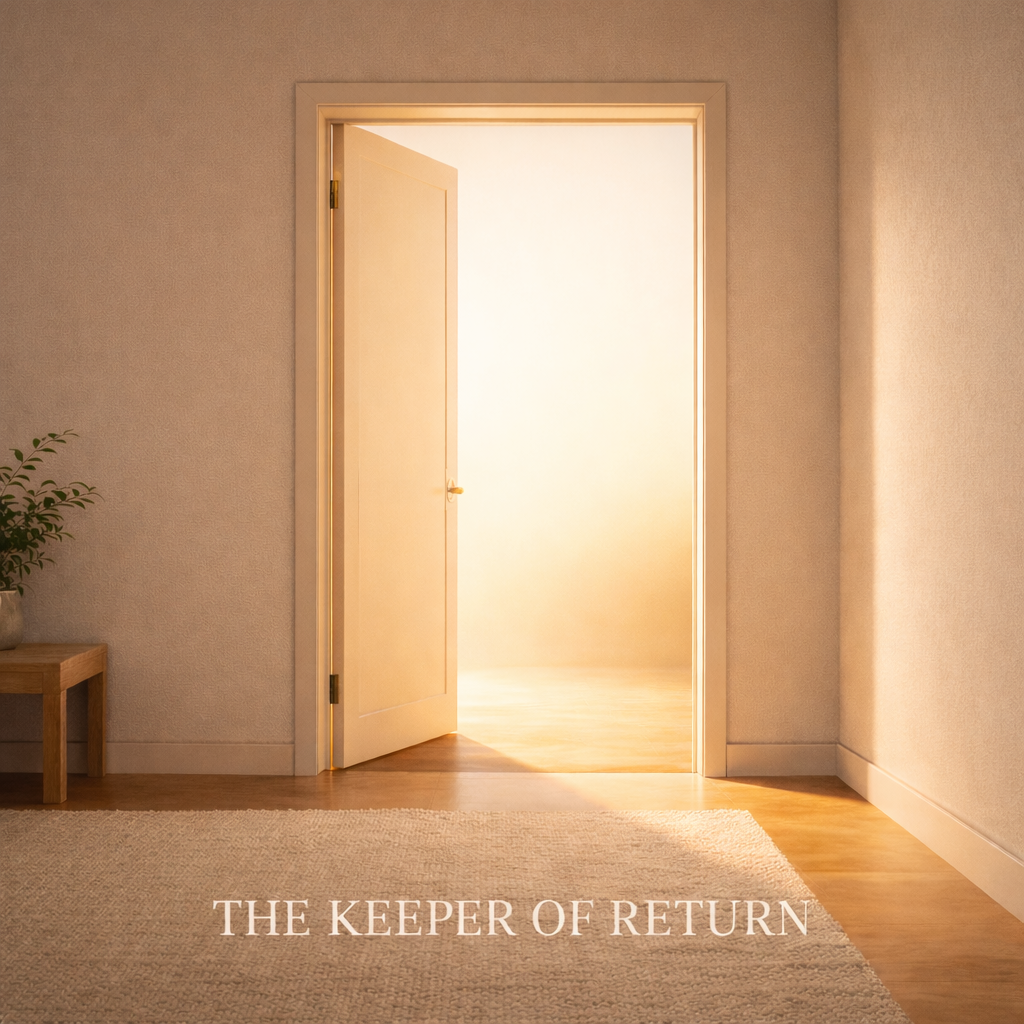 modern electronic-leaning pop, piano-driven with subtle synth layers, 76–78 bpm, steady rhythmic pattern, clean modern production, minimal reverb, controlled harmonic movement, composed spoken-sung female vocal, neutral and steady delivery, sense of return and repair, calm but awake, no acoustic textures, no roots music, no folk, no country