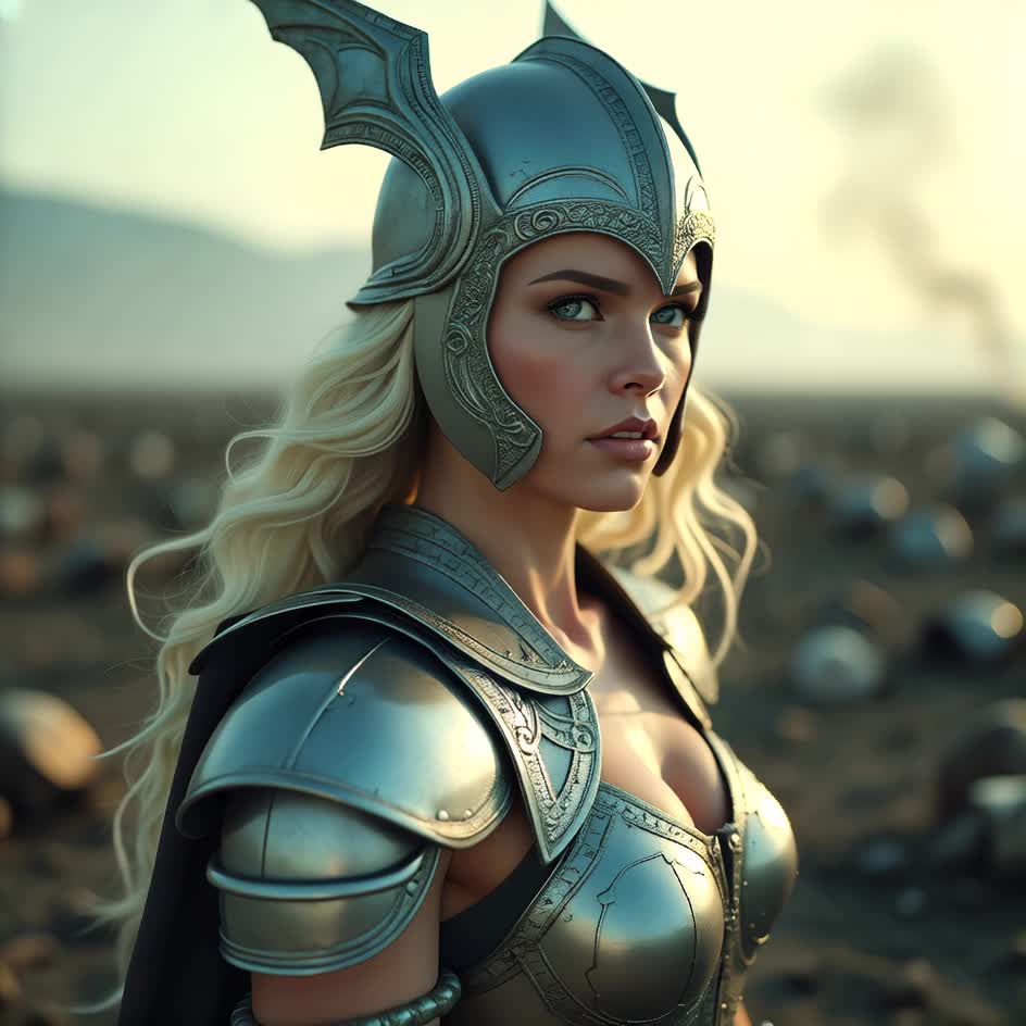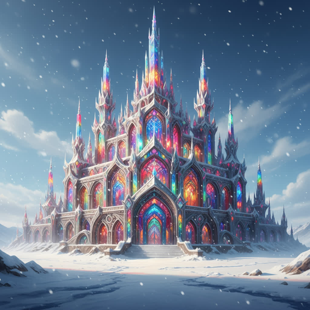 Epic symphonic metal intro with full orchestra—soaring strings, brass, and choir—colliding with thunderous double-kick drums and driving distorted guitars, Verses pair glistening harp and piano with orchestral touches beneath a powerful female soprano, growing to a massive multi-layered chorus, Dramatic tempo shifts, a virtuosic guitar solo, orchestral interlude, and choir-backed operatic climax emphasize grandeur and intensity