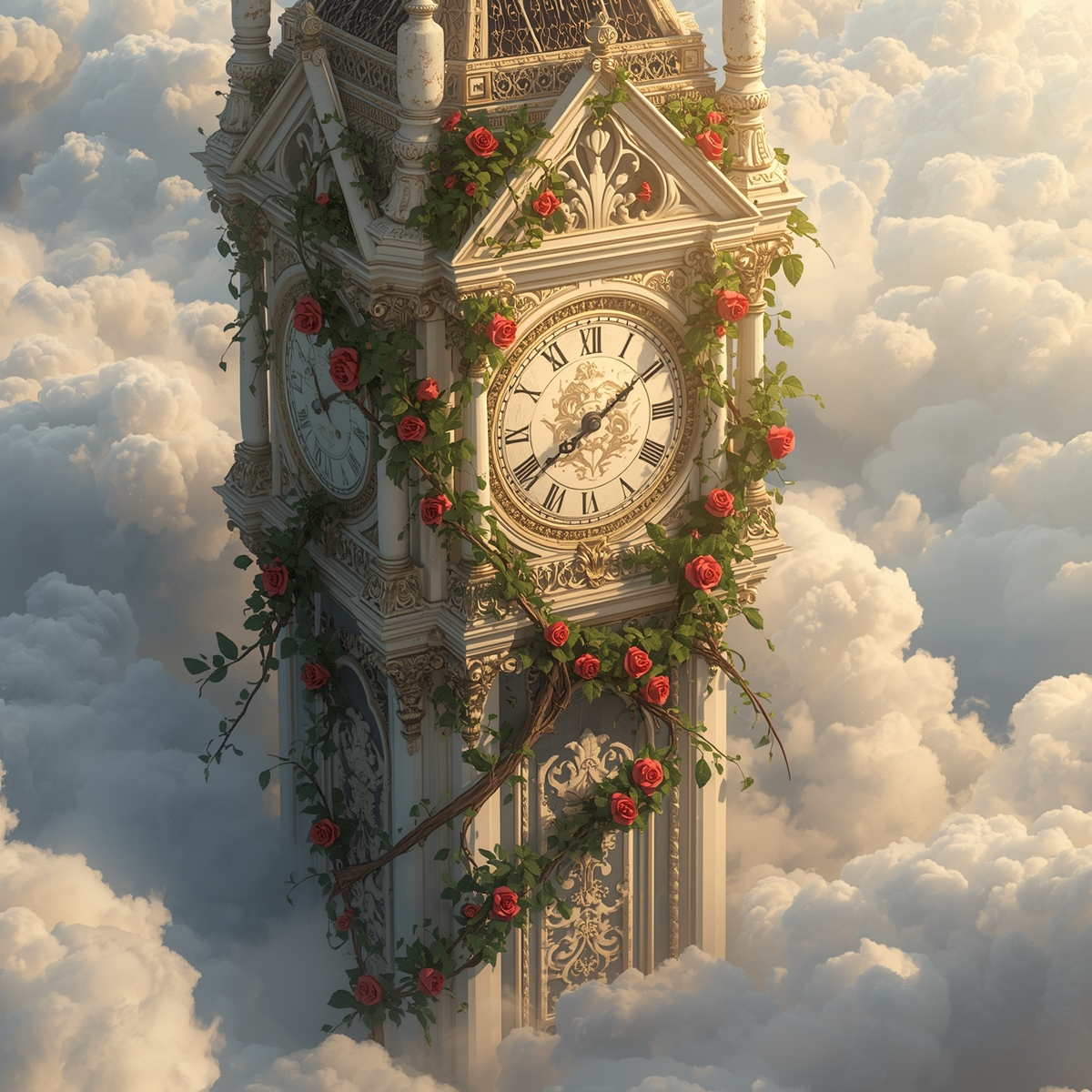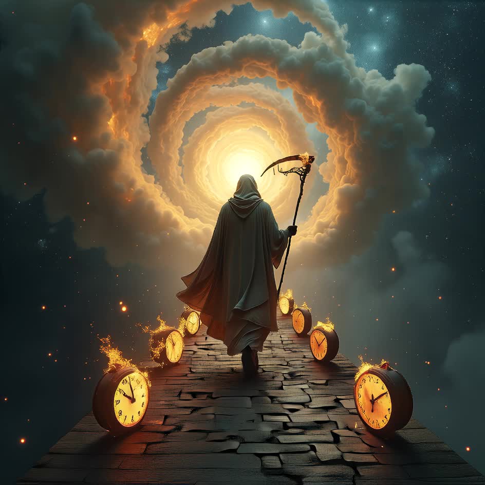 A grand neo-classical symphonic piece opens with a the sound of a ticking clock, then a dramatic orchestral swell, driven by percussion and surging strings, A four-part mixed vocal ensemble enters, weaving intricate polyphony and dramatic, staggered vocal entrances, The operatic voices soar over lush orchestration, with cinematic brass and pulsing timpani, Shepard tones glide throughout, enhancing tension and lift, The song crescendos to a bombastic, multi-layered climax, where complex vocal counterpoint fuses with the orchestra for a powerful finale, A bombastic neo-classical symphony with cinematic orchestra, pulsing percussion, and dramatic brass, Four-part mixed vocal ensemble employs classical and staggered polyphony, soaring operatic lines, and Shepard tones glide throughout, building to a grand, polyphonic climax