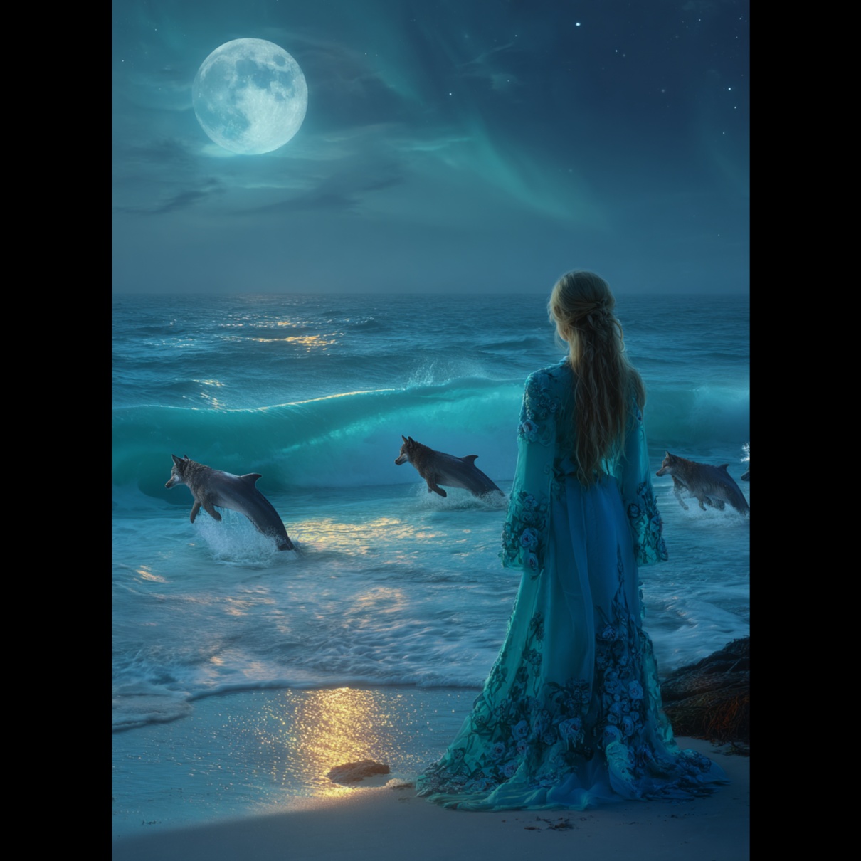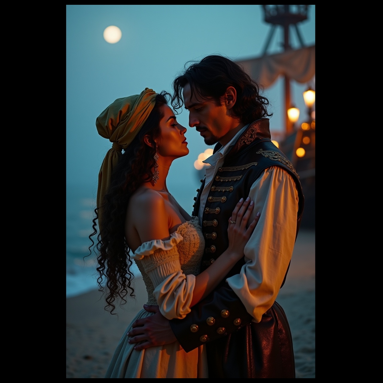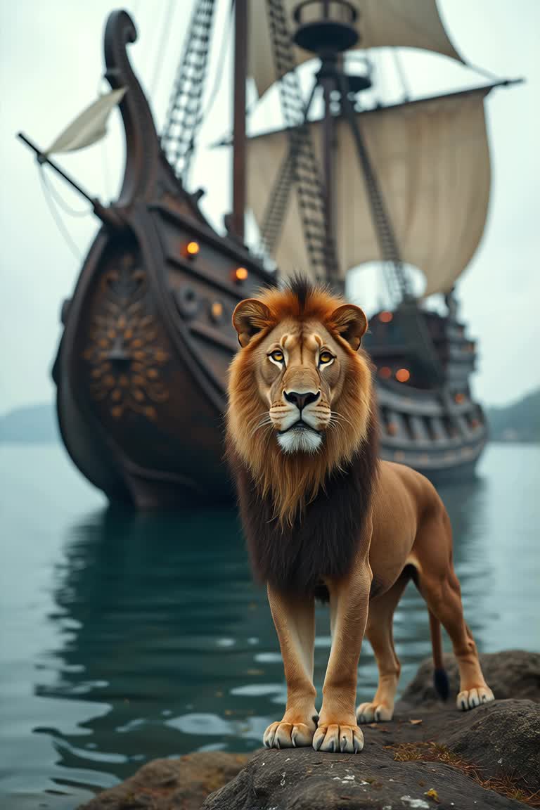 Sweeping orchestral strings and choirs swell over the sound of crashing waves, soon joined by distorted guitars and galloping drums, Verses fuse harpsichord, accordion, and thunderous riffs, building into soaring, sea-swept symphonic metal choruses, The bridge erupts with cinematic brass blasts and rapid double-kick flourishes, while the instrumental interlude features neoclassical guitar solos trading off with stormy orchestral percussion, The piece culminates in a grand, tempestuous outro—polyphonic choral harmonies and a furious orchestral-metal crescendo driving the final surge