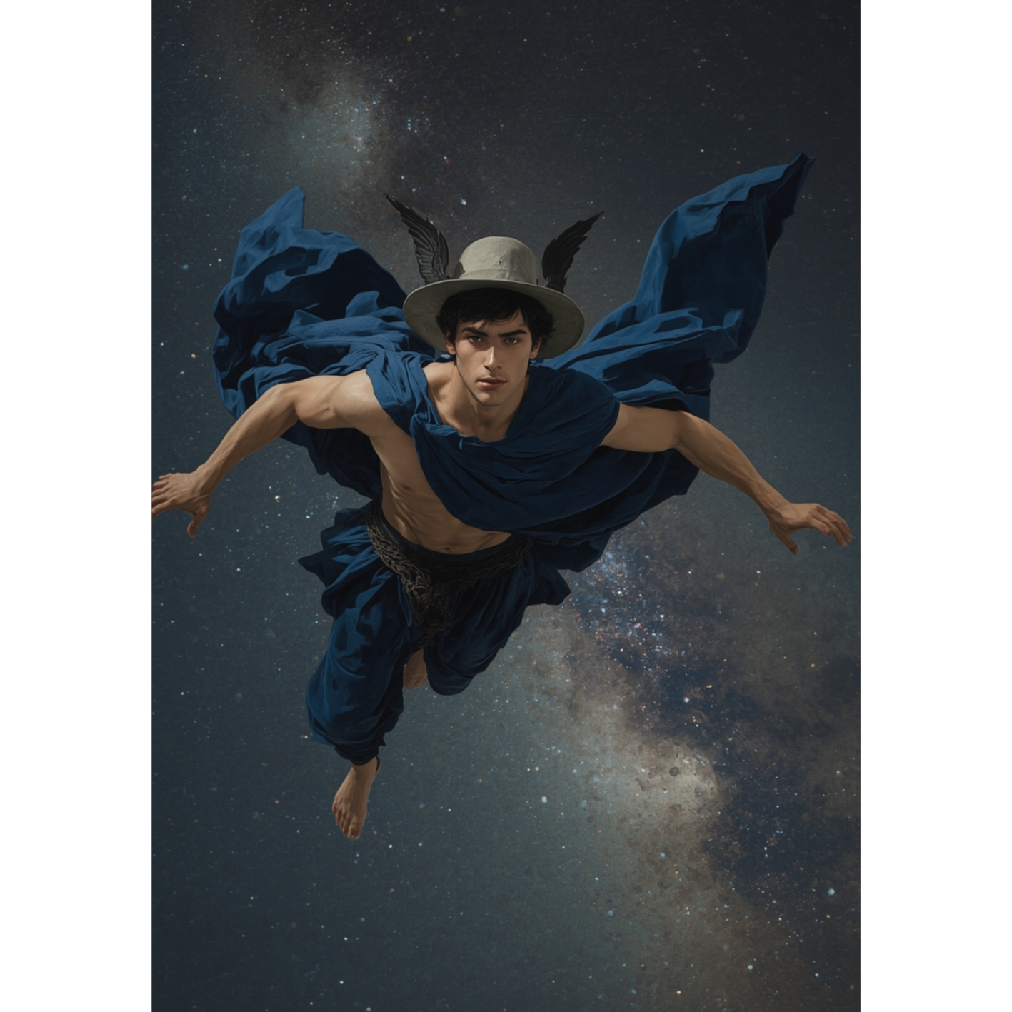 Modern ambient cinematic ballad with trip-hop and Eastern modal influences, performed at a slow to moderate tempo with ritualistic pacing, A foundation of looped Eastern percussion, reversed ambient textures, and filtered analog drones sets a glacial, mythic tone, Male baritone vocals float in a restrained, breathy, legato style, supported by three-part polyphonic harmonies that drift in and out like echoes from a mirage, Harmonic coloration emphasizes modal intervals with occasional ornamental melisma, subtly evoking Middle Eastern scales within a Western harmonic shell, Lead textures include shimmering glassy synths, sine-wave pads, and ambient string swells, while support elements like low analog pulses and bowed textures create emotional depth, Reverb is long and immersive, with stereo motion and slow-decay shimmer