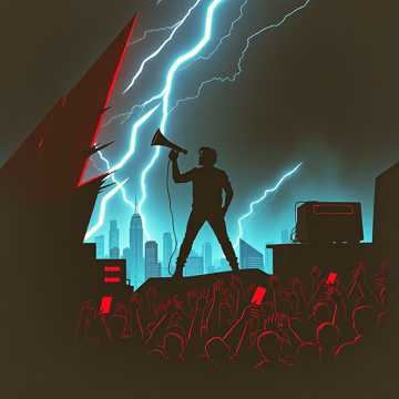 rock, Chaotic hard rock bordering on noise rock: detuned guitars fed through fuzz and ring-mod mayhem, jagged bass locked to a relentless kick-snare barrage, shout-along male vocals that clip the preamp, Verses are tight and tense with choked riffs; chorus explodes into wide open power chords, gang vocals, and feedback swells, Middle section breaks into a stomping half-time wall of sound, then slams back full-speed for a final, unhinged refrain, noise, hard rock