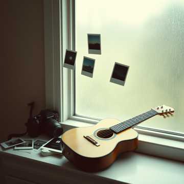Lo-fi indie ballad with gentle fingerpicked acoustic guitar, soft piano pads, and distant vinyl crackle; male vocals close-mic’d and intimate, Verses stay hushed and conversational, chorus swells with stacked harmonies and subtle bass, Light brushed snare and shaker ease in halfway, with a bittersweet lift on the bridge, then pull back to guitar and voice for the final chorus and outro, melancholy
