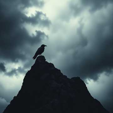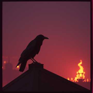 Dark cinematic male vocal with broody tone, Tight rhythm, modern production, Low organ drones, deep hybrid drums, metallic hits, bowed steel textures, and subtle throat-singing pulses to imitate a raven (“hrr-aaah” as textured backing, not lead), Add sub-bass pulses and wide atmospheric reverb, Vocal style: low chest resonance, gritty breathiness, controlled growl on key lines, Optional dark male choir hum under the chorus, Mood: tense, ominous, ritualistic but not medieval — more contemporary cinematic drama, Use short punchy delivery for lines like “Raven, speak” and “Face the night, ” with slight distortion, Keep tempo steady with strong downbeats and dramatic pauses, Focus on depth, weight, and shadowy ambience
