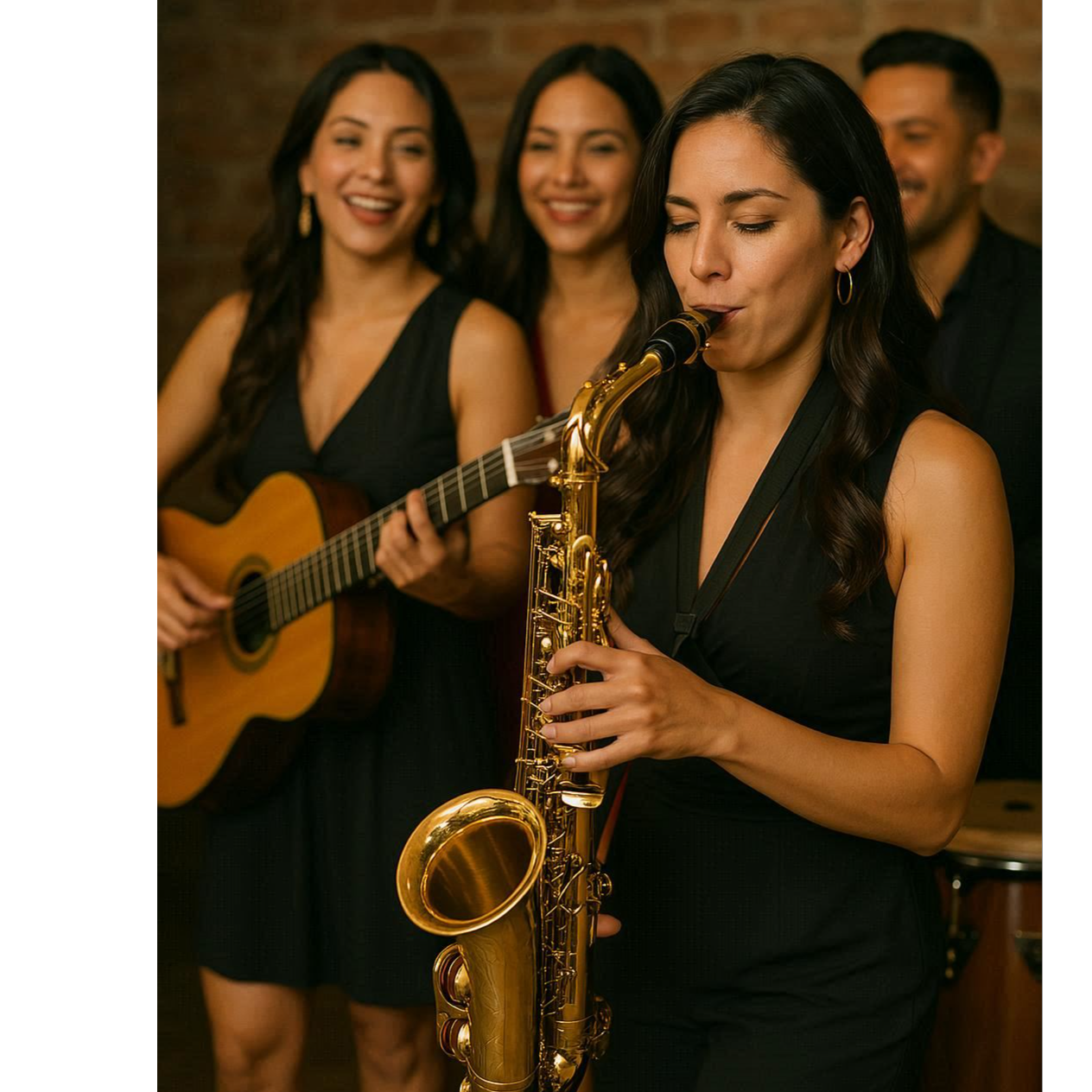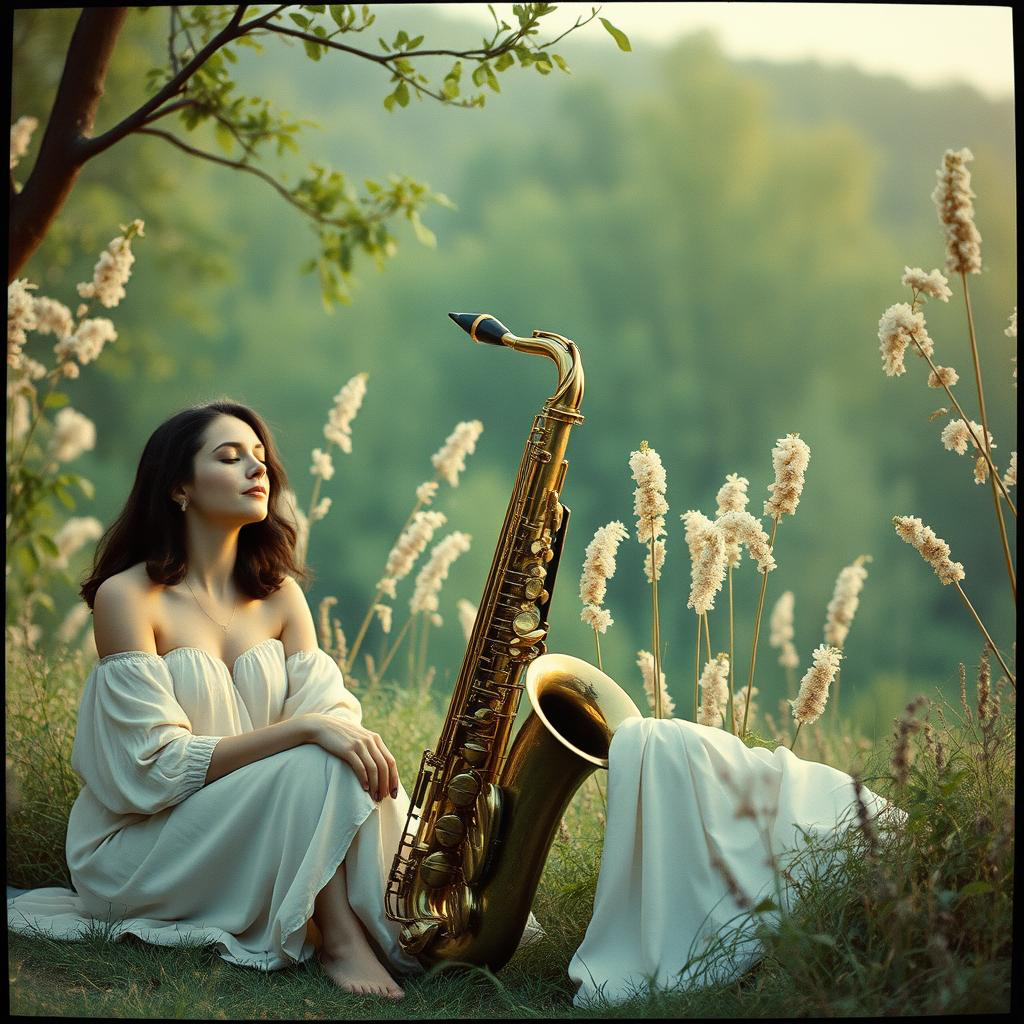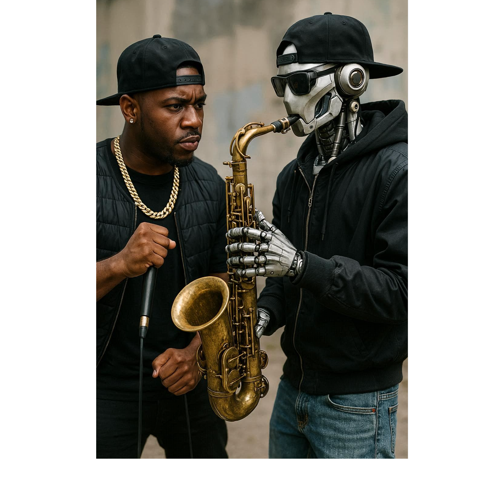 Funky Saxophone Ensemble, Growling Baritone Saxophone, Turntableism, lo-fi, groovy, Soulful Female Voice