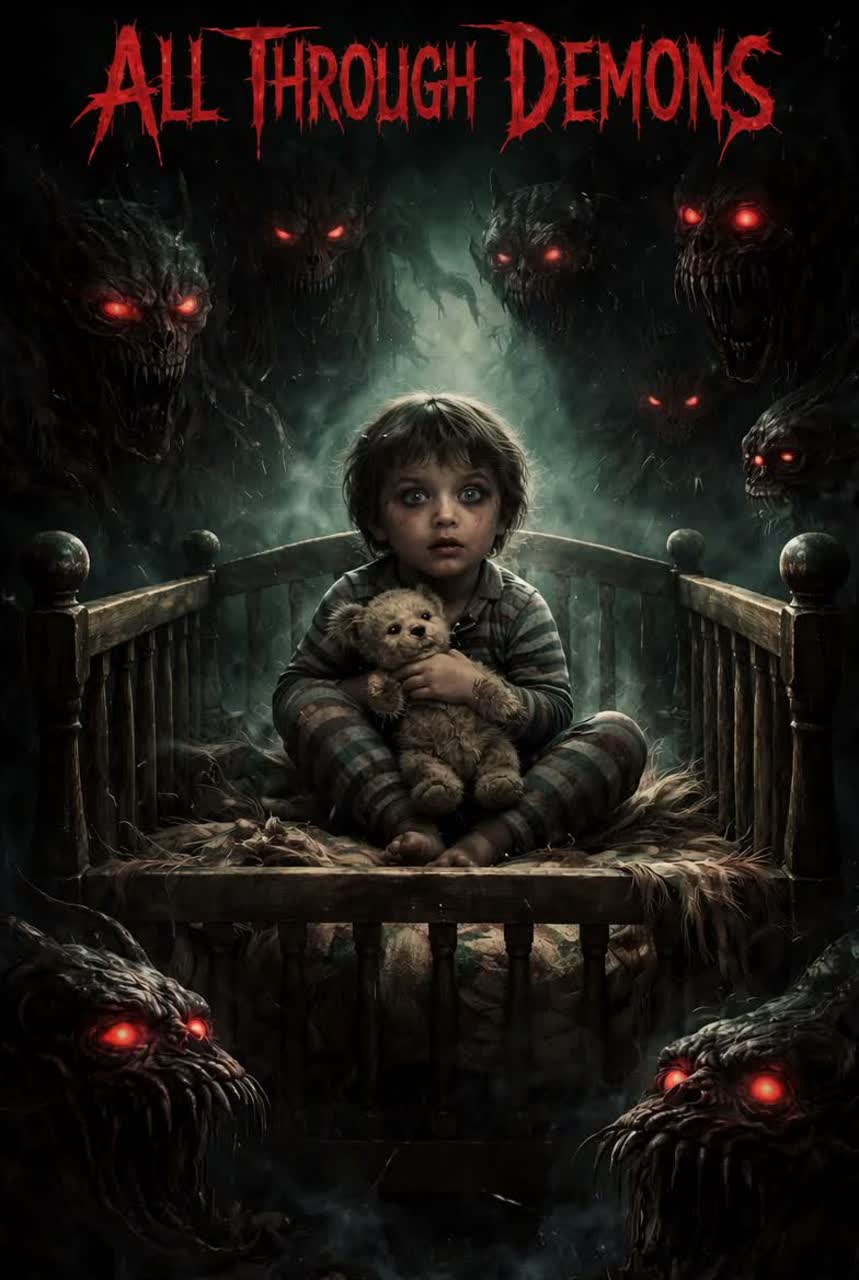 Dark trap beat, 138 BPM, half-time feel, haunting A minor key with distant warped choir pads, gliding distorted 808s like moving shadows, glitchy hi-hat rolls like breathing, punchy snares with horror reverb, constant stutter and glitch haze building to chaos, subtle demon whispers and padded-room echoes, High-pitched little boy voice (Tiny) starting soft and lullaby-like then exploding into unhinged psychotic cartoon insanity, heavy auto-tune, formant shift, pitch wobble and bitcrush, Lyrics based on twisted "All Through the Night" lullaby: Sleep my child and peace attend thee, All through the night, Guardian angelsโฆ wait they left already, Demons dancing, shadows bending, Theyโre coming to take me โ HAHAHA โ all through the night!