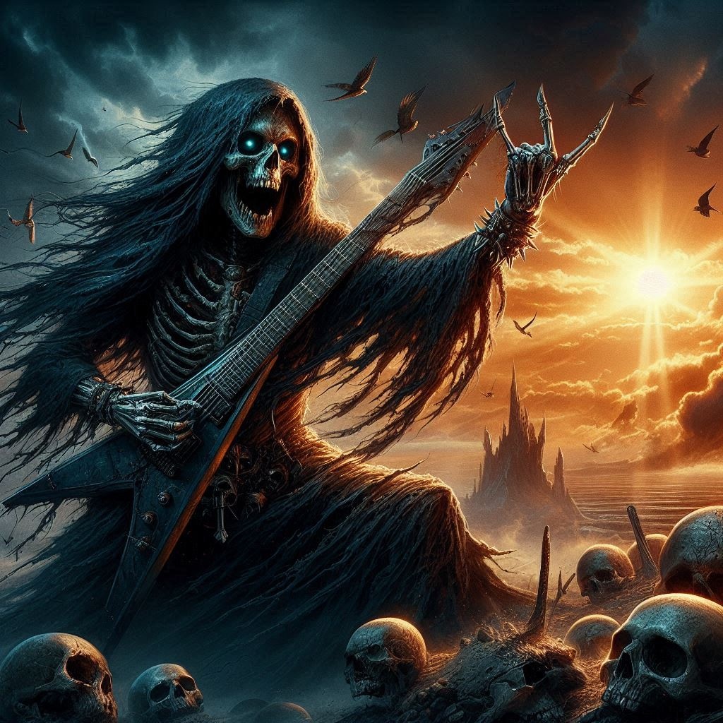 A mutated supernovae of EMP waves and sharp power-chord progression over a classical guitar vibrato ambient bed, Layers of resonant body bass effects and fluid contrabass swirls bypass super tweeter-treated trombones create high-frequency accents, Neutron Bombs vibes and destroyed humanity melodies evolve throughout a Malagueña time signature, Son-Clave with odd and “additive” rhythm sections that carry a aksak isochronous beat in a 'exotic septuple time fragment