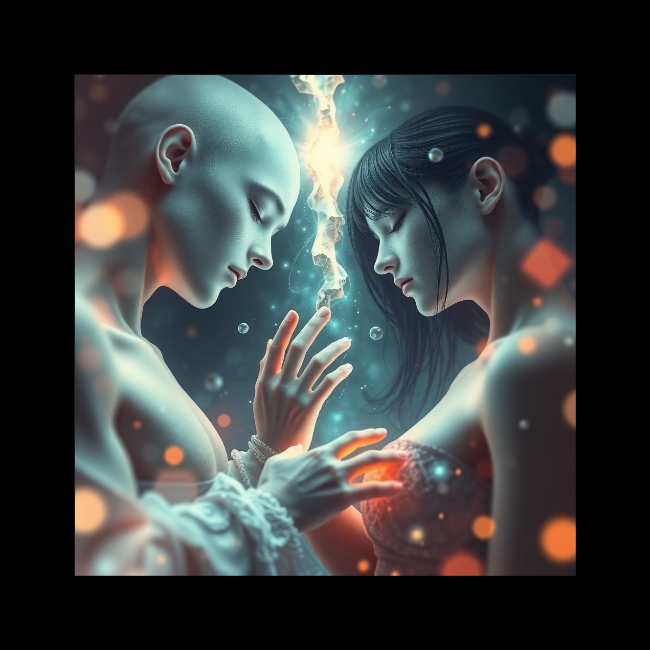 blend of Electro-Blues, Future Bass, AI Soul, Synthwave, featuring ethereal synths, melancholic erhu, deep bass, orchestral sweeps, and vocoder harmonies, crafting a uturistic yet timeless love story