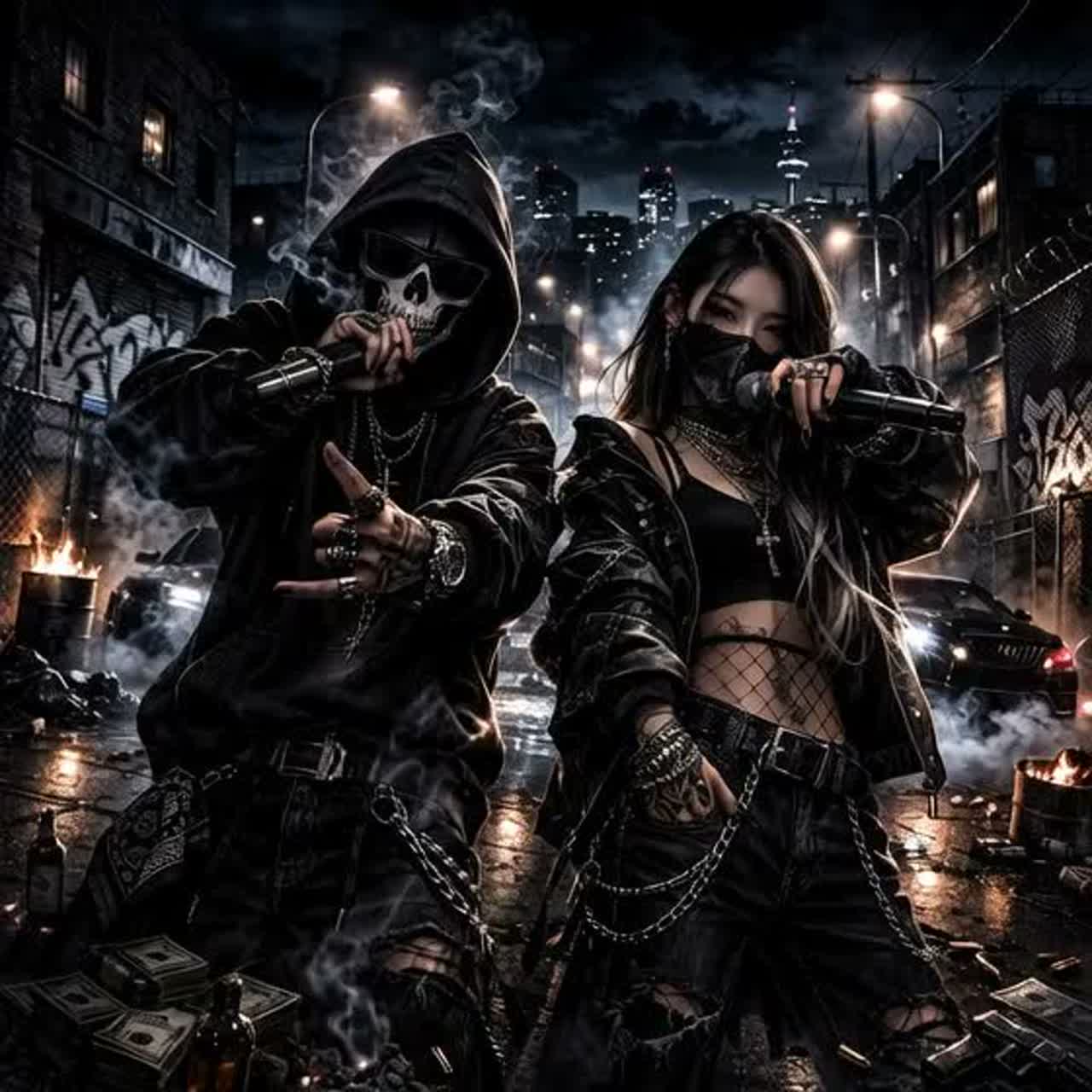 female voice, female voice, dramatic Rap, swing, electro, rock, cyberpunk, psychobilly, K-pop, Violine
