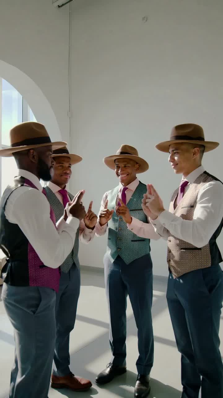Spanish Barbershop Quartet, A cappella, 5-part Harmony, Male Vocal Ensemble, Finger Snapping, Doo-wop influence, Clean and Bright, Upbeat, Intricate Vocal Arrangement, ‑instruments, ‑percussion
