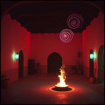 Jump Up Drum & Bass, 160 BPM, Aggressive wobble bass, Reese growls, crisp breaks, Authentic Moroccan Gnawa music only: sintir (bass lute), qraqeb (metal castanets), bendir frame drum, vocals in Moroccan Arabic (Darija): short trance chants (“Haya!”, “Nar!”, “Dak!”), Hypnotic, ritualistic, bass-driven, Studio quality, 48 kHz]