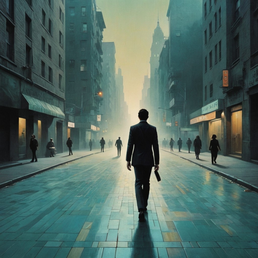 A tight, syncopated Afrobeat-inspired groove anchors the rhythm section over sparse, funky bass and jagged clean guitars, while minimalist synths weave angular motifs, Thin, glassy art rock textures create hypnotic, detached repetition, with odd-meter accents and shifting dynamics driving a surreal, philosophical atmosphere