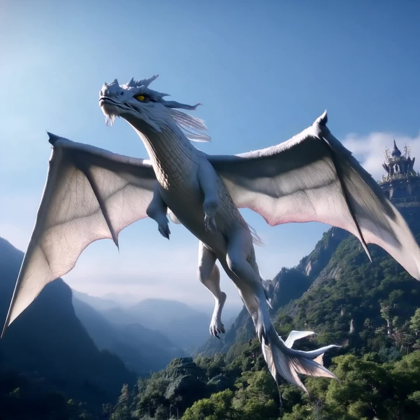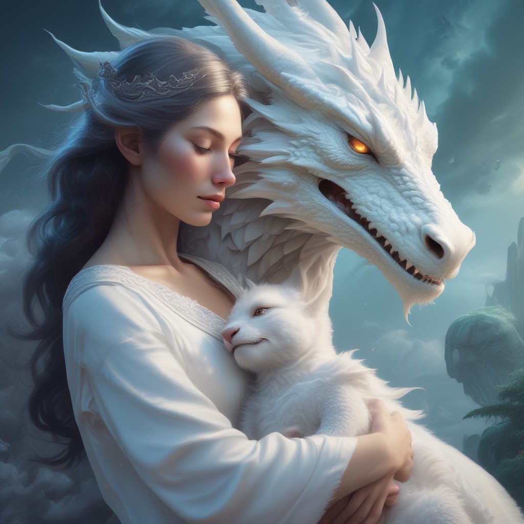harmony, ambient, ethereal, peaceful, feeling free, white Dragon is flying, light, soft ending