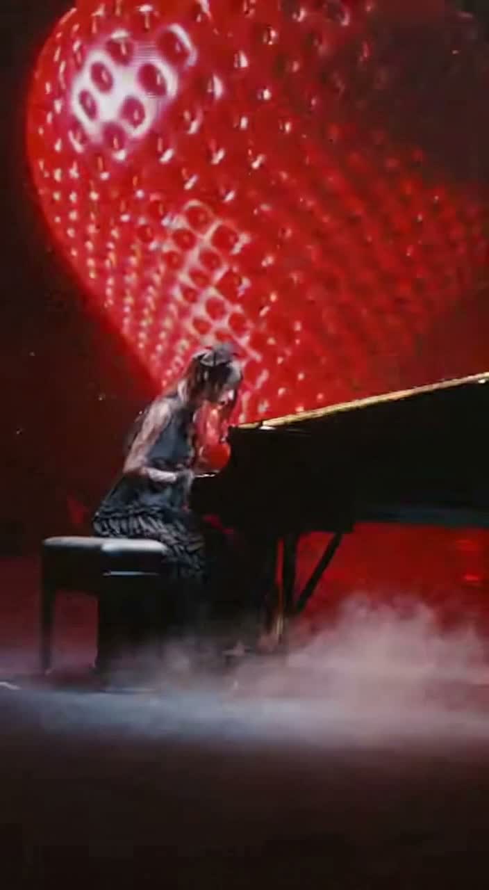 solo grand piano and female vocal only, massive arena live atmosphere, huge crowd presence, distant cheers, audience roar between lines, thunderous concert hall resonance, no band, no drums, no bass, no percussion, no guitar, no synths, no orchestra, no extra instruments