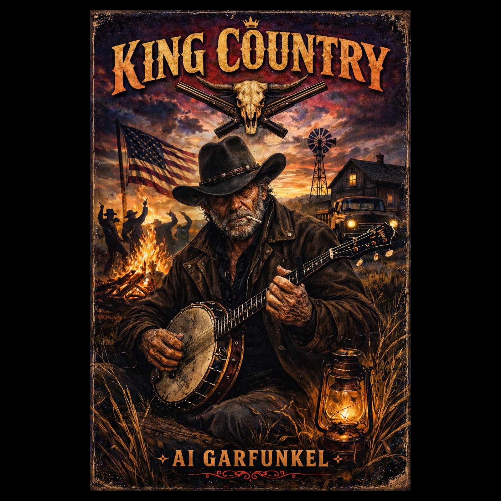 Country rock with heavy southern rock and outlaw country influences, The arrangement features distorted electric guitars playing chunky power chords and bluesy riffs, a clean acoustic guitar providing rhythmic strumming, and a prominent electric bass, The drum kit uses a heavy kick and snare with active crash cymbals, Vocals are a deep, gravelly baritone male lead with occasional multi-part harmonies during the chorus, A brief rap-style delivery occurs in the bridge, The track is in 4/4 time at 82 BPM in the key of E minor, Production is modern and polished with slight saturation on the vocals and wide stereo panning of the guitars